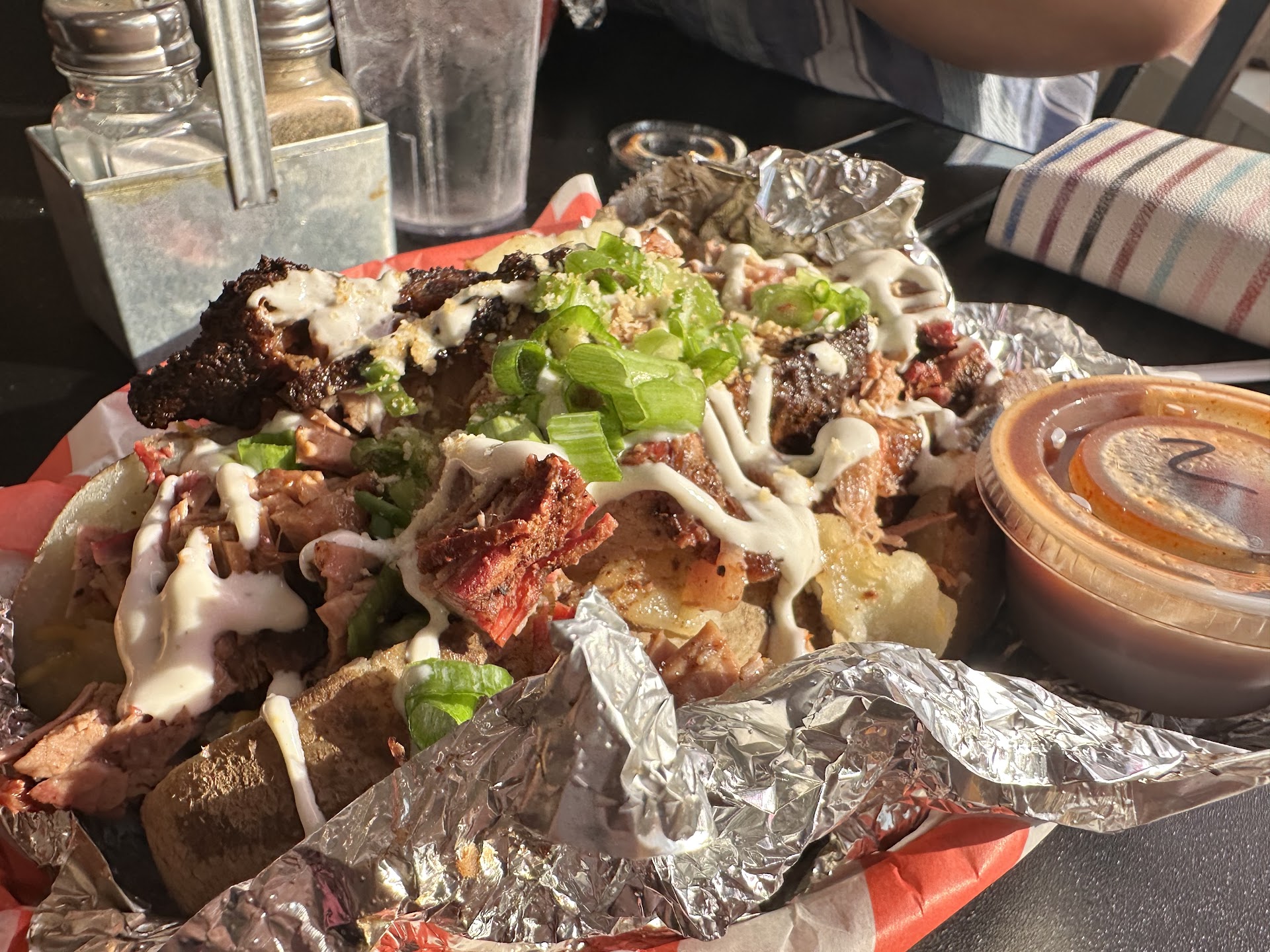 The sides were just as impressive. The baked beans, made from the owner’s grandmother’s recipe, were rich and flavorful—so good that even my picky mom called them some of the best she’s had. The coleslaw caused a friendly debate between my mom and me: I had the raspberry version, she had traditional, and both were so good we couldn’t agree on which was better.