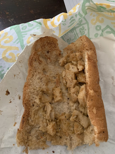 My sandwich had no cheese, barely any lettuce, and just TWO tomatoes on the entire foot-long. It wasnât toasted like I requested, and the bread was not fresh. There was so little chicken that it looked like I was just holding bread. I took one bite and couldnât eat the rest.