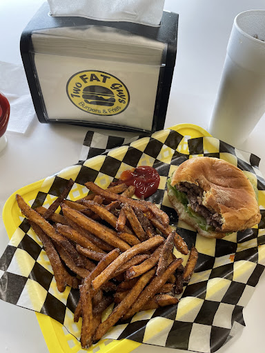 Read moreThe food is hot, fresh, and tasty but may be a bit too expensive for blue collar workers on limited budgets. For the price of a burger, drink, and fries, I could get half a tank of gas in my truck. That being said, the fries are crispy on the outside while being hot and tender on the inside (aka near perfect). You have a number of flavors to get on your fries and they don't hold back on smothering the fries with salt and seasonings. My smart watches autodialers my cardiologist after the first few fries because the salt meter spiked. I got the garlic seasoning and feel pretty confident my breath could kill a vampire two hours later. The lettuce and other toppings look like they are fresh out of the field which complimented the moderately sized meat patty. I have no idea why places feel they must place the completed hamburger in a chamber under a 1 ton press and flatten it into a round ribbon but Two Fat Guys seems to think thin burgers are in. Lastly is the $3 one size drink in a small cup. I'm guessing the owner has a child to put through Harvard so you get a four liter price in an eight ounce cup. The interior is a bit dated and feels like there was no quality checks on building the place. Fortunately it felt very clean. I won't go back here without a 60% off coupon, the food just isn't worth that much. I also think there is a lot to be said for good presentation and flattened hockey pucks on a smushed bun doesn't wet...