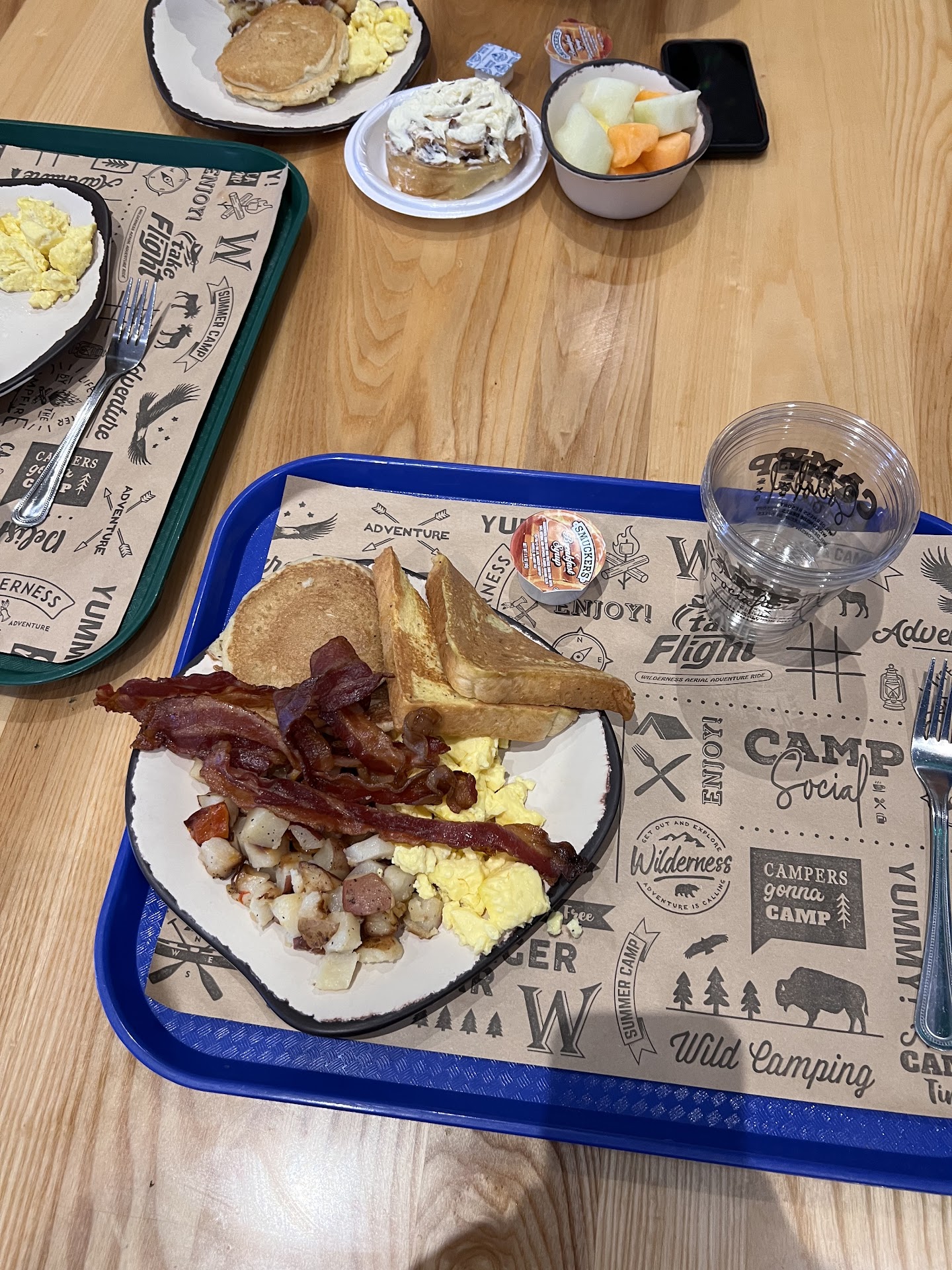 Read moreWe have been bringing our kids to the Wilderness Resort for years and have always looked forward to eating at the New Frontier restraunt for breakfast. The breakfast was always huge, delicious and had lots of items to choose from! We never looked reviews up for the new Camp Social because we figured it would be the same good breakfast buffet as it has been in the past....unfortunately, all 4 of us were very disappointed with the food quality and the amount of or, should I say, lack of items to choose from. Everything that should have been hot was lukewarm, the eggs were gelatinous and water-logged. There was no omelet station available on this day nor was there any toast, English muffins or bagels! Instead they had "Kings Hawaiian" dinner rolls with a bowl filled with packets of jam. We paid over $70 for this meal and it was terrible, we actually left there hungry and went back to our room and snacked. We will never be eating at Camp social again and will also not eat at any other food establishment...