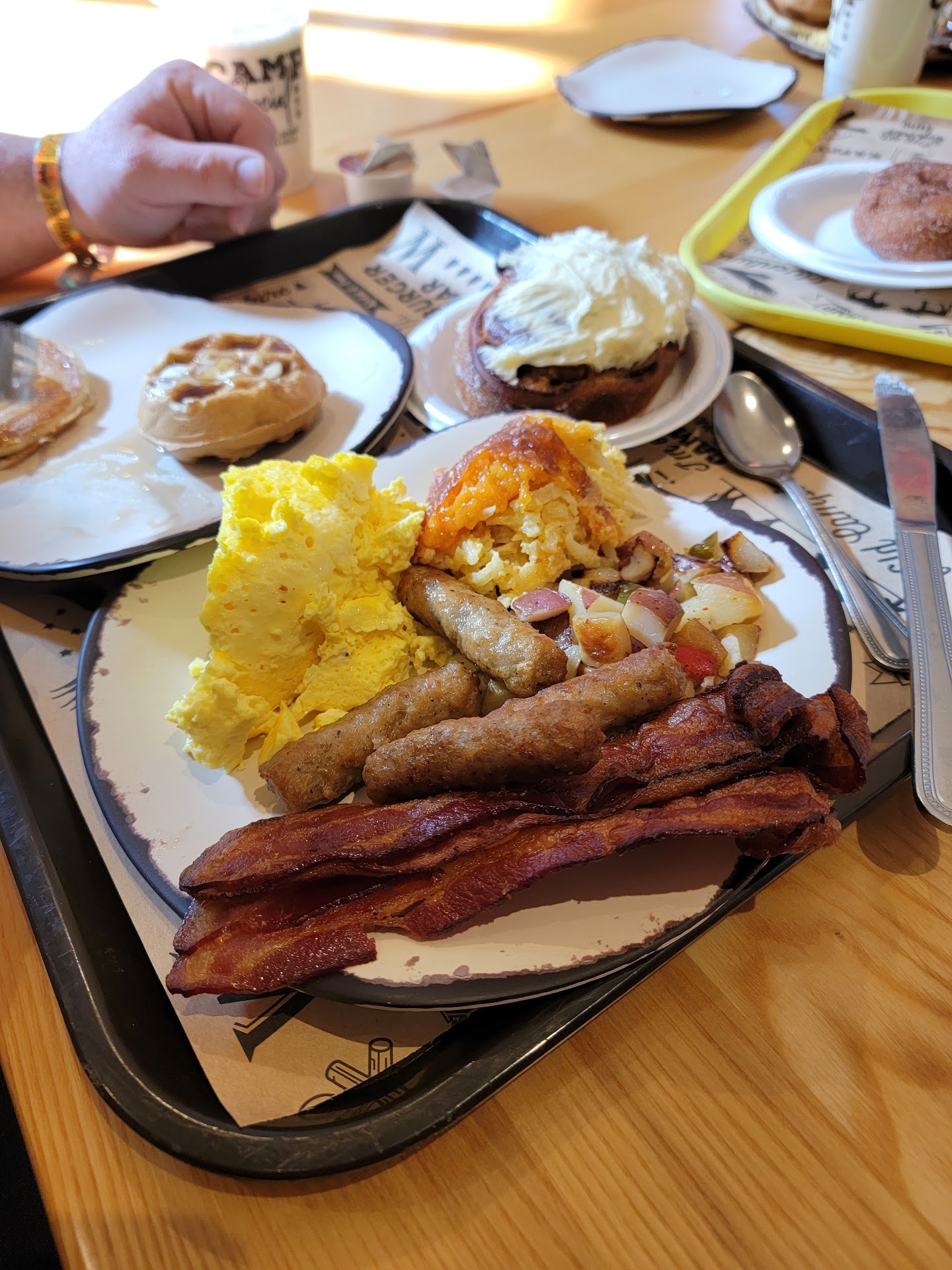 Ā Ā Ā Read moreWe have been bringing our kids to the Wilderness Resort for years and have always looked forward to eating at the New Frontier restraunt for breakfast. The breakfast was always huge, delicious and had lots of items to choose from! We never looked reviews up for the new Camp Social because we figured it would be the same good breakfast buffet as it has been in the past....unfortunately, all 4 of us were very disappointed with the food quality and the amount of or, should I say, lack of items to choose from. Everything that should have been hot was lukewarm, the eggs were gelatinous and water-logged. There was no omelet station available on this day nor was there any toast, English muffins or bagels! Instead they had "Kings Hawaiian" dinner rolls with a bowl filled with packets of jam. We paid over $70 for this meal and it was terrible, we actually left there hungry and went back to our room and snacked. We will never be eating at Camp social again and will also not eat at any other food establishment...