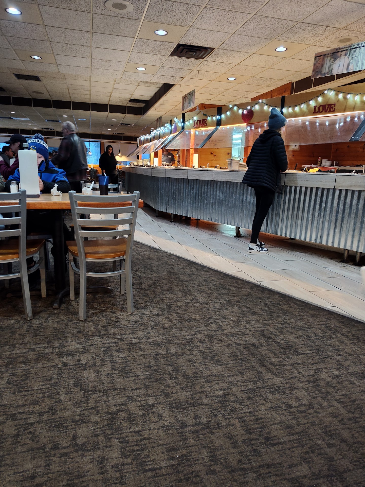 Read moreI was travelling through Wisconsin Dells and happened upon this iconic tan building with green trim and there it was, Ponderosa! I couldn't believe my eyes. The sun was shining on just this building as it was overcast this day; I was excited as I thought they all went out of business. As I entered the doors it was as if I hopped in a Delorean, hit 88 mph, and powered to not even what todays EVs can handle, 1.21 giggawatts and headed back in time to 1989. It was just like I remembered it as a kid; nostalgia at its finest. As a Pondo aficionado, I ordered the Sirloin Tips. They were good and cooked as I ordered them. I can tell you since I worked at a Ponderosa for 4 years, the recipe of the mushrooms and onions has not changed. I was not disappointed, exactly what I was expecting. The buffet items were overall good, but one of my favorites are the rolls. Get them right out of the oven for the best experience! Ponderosa has a great selection for all to choose from, so I think if you bring a family, everyone will find something that will take care of those hunger pains. As I remembered Ponderosa, one of the items that was popular for me as a kid, was the dessert bar with the ice cream machine. They did not have an ice cream machine but do have a number of desserts which the chocolate brownie did not disappoint. Overall, the food and service is on par for a Ponderosa. Give them a try, but you don't have to take my...