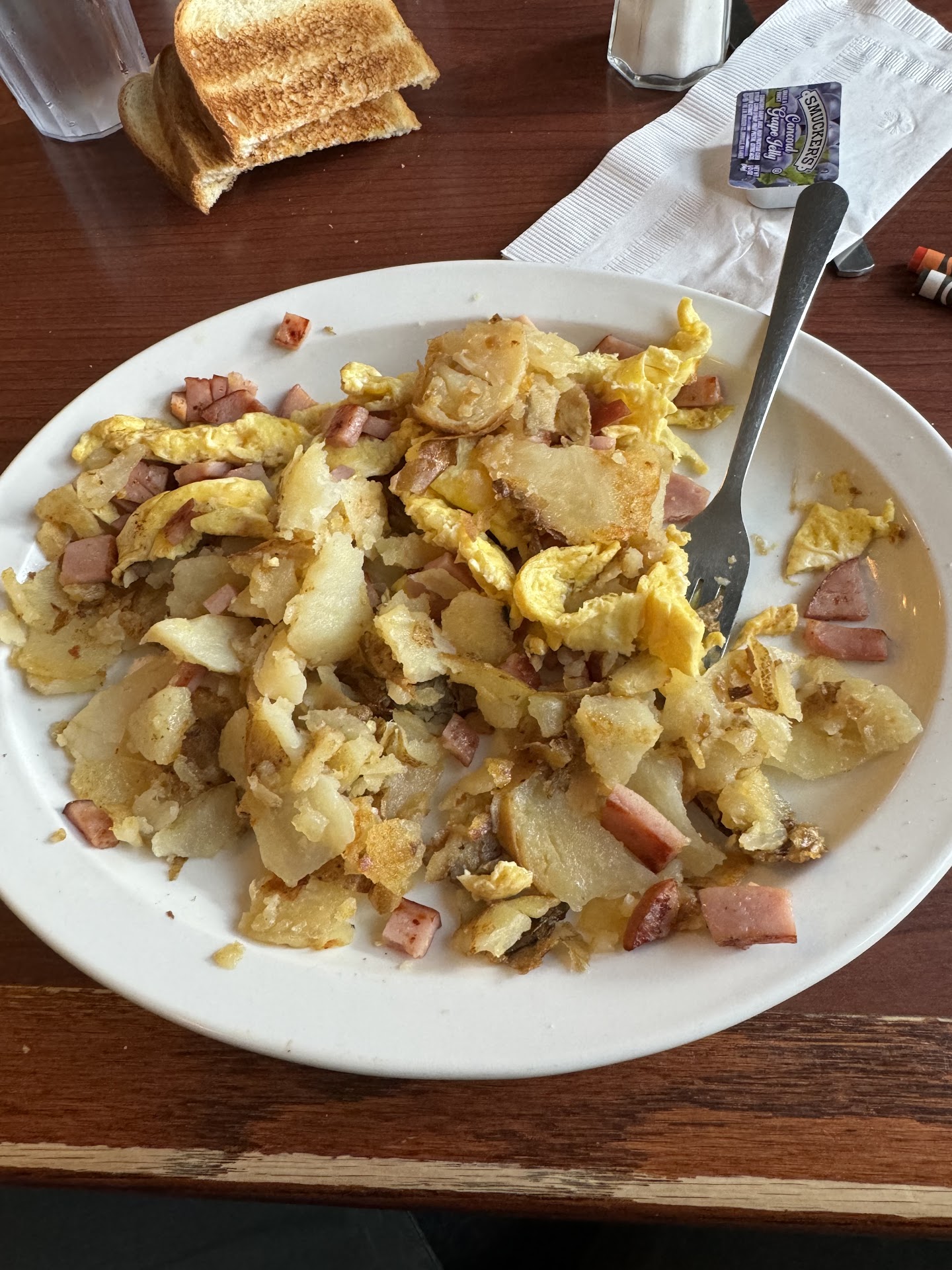Man. I wanted to like this place. Drive by it everyday. Really neat inside with historic photos. Staff were pleasant. Came in for breakfast with my son. 11 dollars for one pancake and sausage patty and 15 dollars for a scramble of eggs and ham with potatoes and “sourdough” toast. Little back and forth whether the toast was sourdough vs white toast- tells me “sourdough is white” - ya no kidding- so either they unknowingly grabbed the wrong bread or they bought the cheapest sourdough from Sysco and had the flavor and appearance of white bread. Either way extremely over priced for breakfast and food was bland and Sysco specials. No craft in the cuisine. Inflation is a thing but this was egregious. Was wanting to try for a long time and I can’t come back bc it’s just not financially...