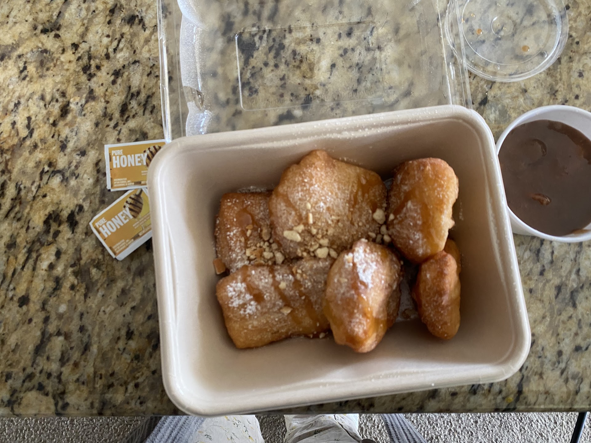 I have never tried a Beignet before, and both the Peach and Banana I would order a million times over. This place just opened, they have amazing staff, and minimal reviews so if you decide to order here, leave them a review itās incredibly worth it. The chicken itself in my Rustic Salad with the Pineapple was incredibly delicious. Perfectly cooked Crispy Chicken, and I love the entire dish with the Pineapple, and Kale and onions. Itās mouthwatering. I would absolutely order again. Have a...