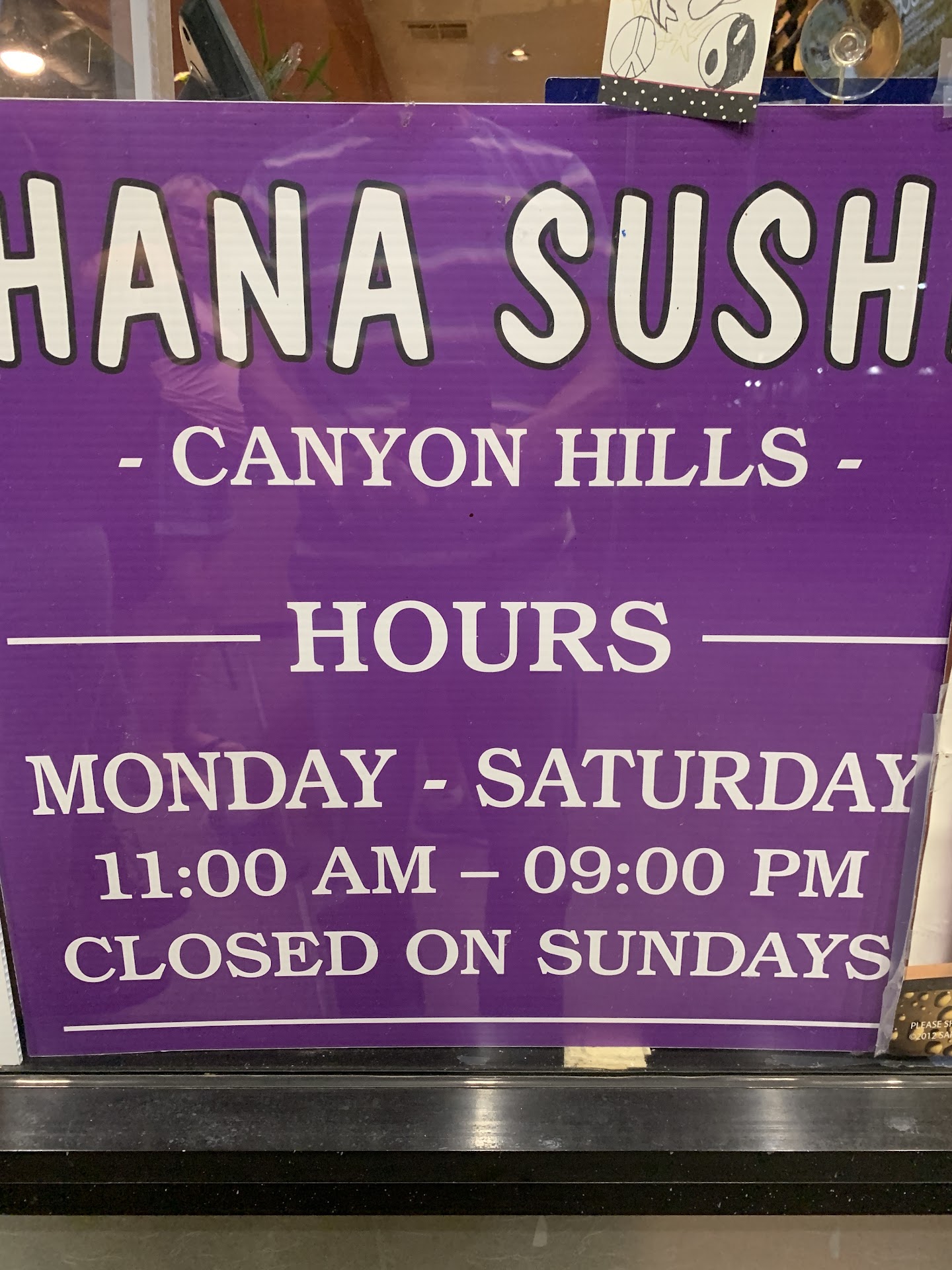 Read moreAte at the Menifee location 2 weeks ago, it was sooo good we ordered the same at Canyon Hills.....we were extremely disappointed with the presentation, Calamari Roll had no lemon slices, no orchid garnish, just a small amount of sloppy chopped up ingredients on top of rice rolls, not at all like the other location, or the photograph, so it was rejected, not worth $15. Asparagus Roll didn't look much better, the sauce wasn't even spread on the plate in a design, but we were hungry. Tasted OK, not spectacular like we had before. What happened to this location? The Sushi Chef was very young ....more training for him. Not one other person in the restaurant...