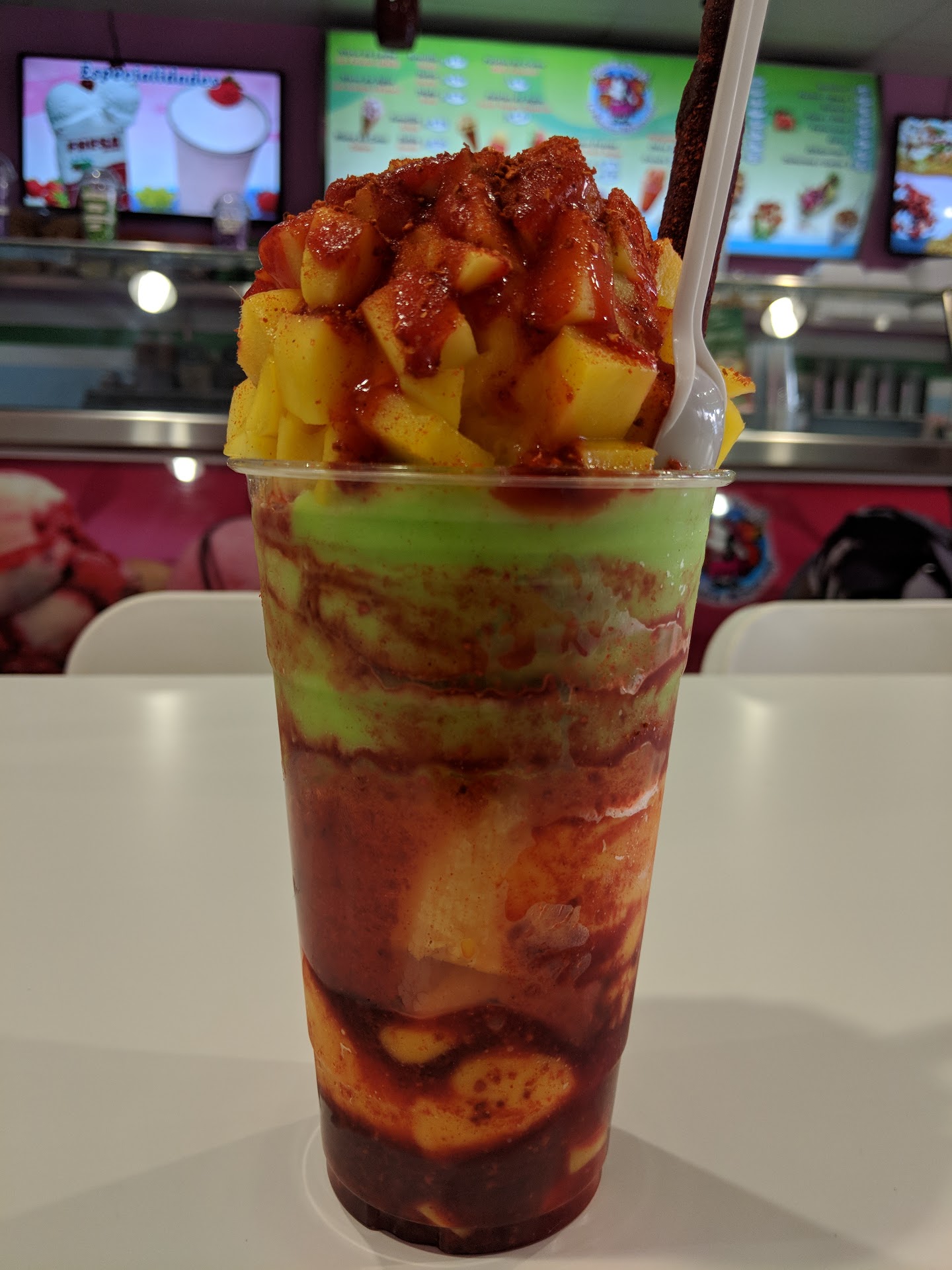 Read moreI frequent this establishment. I am not sure what I am in love with more, the fruit cup or the various flavors of ice cream. After work, I like to stop in and get spears of various fruits such as pineapple, mango, cantaloupe, cucumber, and jamica, Throw in a bit of Chamoy, and I am in heaven. As for their flavors... normally folks hit Carvel, Rite Aid, or Baskin Robins. You really need to try their flavors. My favorite right now is the cinnamon chocolate, but of note are the tequila (real alcohol), and pine nut flavors.
