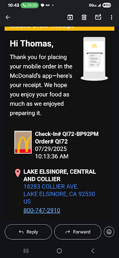 Read moreI love McDonald's. I wanna start off by saying I love McDonald's because it's just awesome. I also wanna say a few good things about this location the food is great and the service is friendly. Now with that said I went just the other night to pick up some food and they had me park at 1 of the 3 parking spots they set aside for people in the drive-through when the wait is too long. I don't think it's fair or right to park in these area because it's so unlit there is no lighting at night. It's not A dangerous area but it isn't fair for the McDonald's staff to have to walk out through the parking lot late at night in the dark to deliver the food to their guest while the guess wait in the car. There are several homeless people around and I have nothing Badd to say about homeless people. They're just trying to survive but some of them aren't healthy. I can't imagine what it would be like for someone to have to wait in their car who may be afraid of all of these people around in the dark. I don't believe it's safe for the staff to come out at night by themselves or with out a coworker. I think it should be much better lit the lighting is horrible. Sorry to write so much about this I just wouldn't want my daughters to be parked outside at night in the dark waiting for their food or if they worked at McDonald's to have to cross the parking lot at night it just doesn't seem...