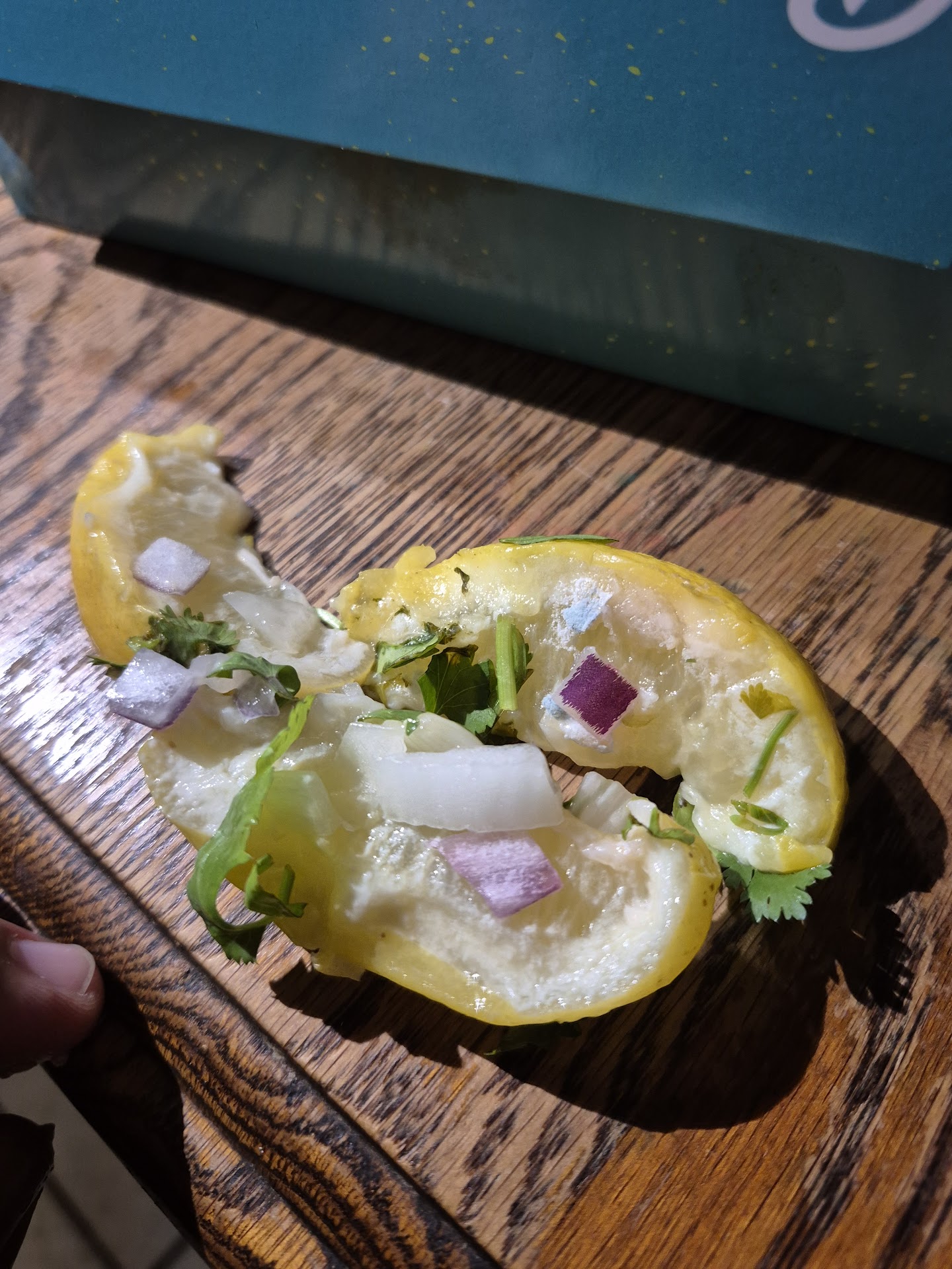 Moldy/Slimy lemons, and the cashier blames me for the mold... I placed an order of boxed tacos (multiples) at 8:17, drove home (5 mins away), set the table and unpacked food. Thereafter, we realize the lemons were moldy and slimy (Old). I was alarmed, as I was feeding my family of nine (7 kids), I called back to report my missing dessert, to which the cashier said it was my fault. I was supposed to reach into the glass and collect the dessert. As I responded, no one made me aware of this process. I went the next day since they closed at 9pm. I was greeted by the same cashier. I showed her the lemons, as she stated" It's your fault, you place the lemons on top of the hot boxes". Which I did not, and I had a 5-minute drive. I advise for upper leadership, as my concern was to bring awareness to unsafe food practices. The cashier said there was no one available, and she could give me my money back. Not once did I ask for my money. As I mentioned above, my concern was the moldy food. I was then advised to call after 5pm. I left and sent a message to their corporate website email. (No Respond) Be alert when consuming their food, and the customer service needs coaching. Highly disappointed at how lightly my concerns are taken by this site...