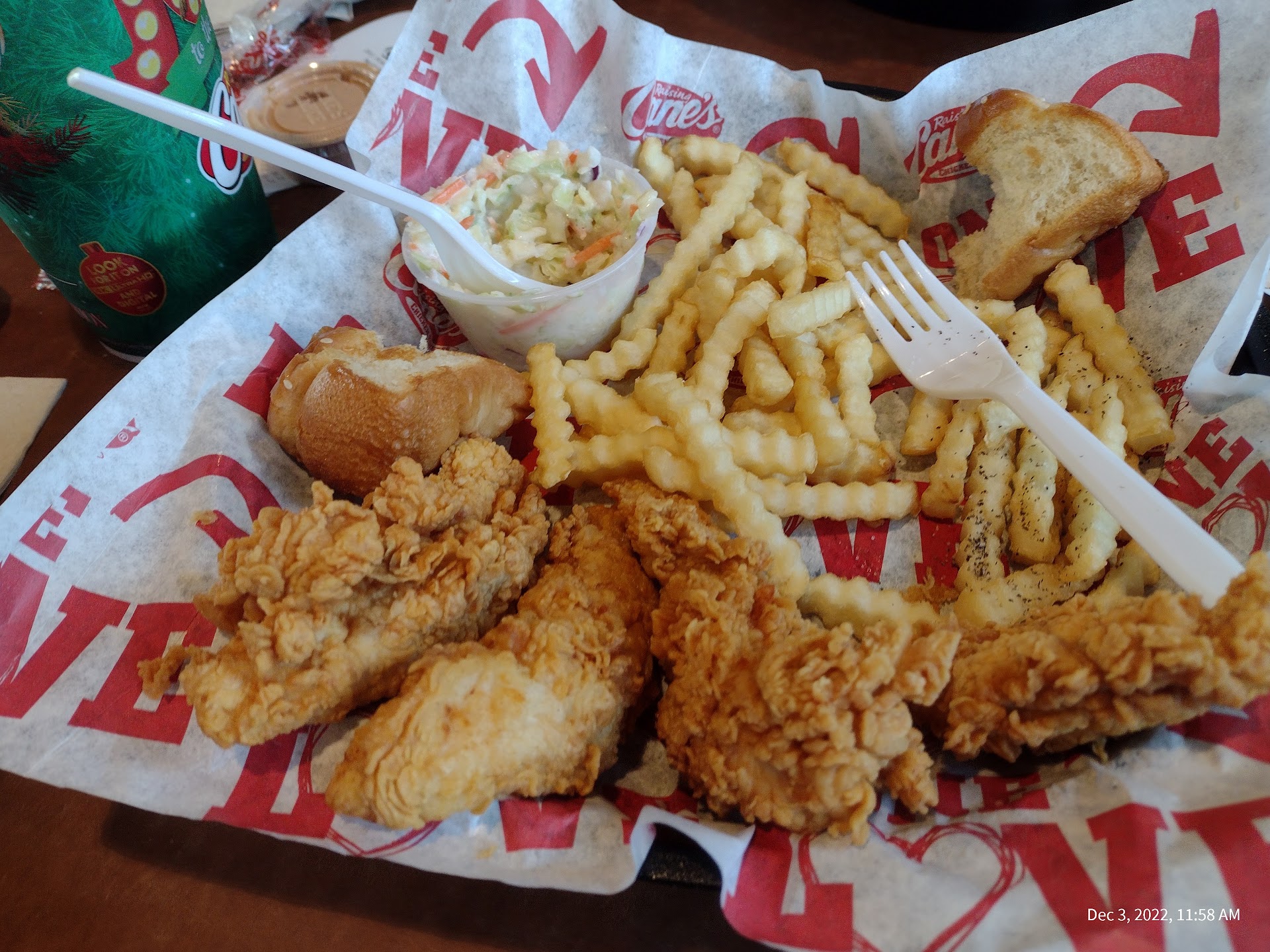 Husband and I wanted to try them out since we’ve never had Canes before and have heard many good things. unfortunately this was a TERRIBLE experience. we ordered the caniac combo. 6 pieces of chicken, some toast, coleslaw and french fries for $15?! a bit pricey. and when we bit into the chicken, it’s waaaay too pricey for the chicken to mostly be bread. the best thing out of the meal was the toast. the french fries were like extra salty and coleslaw was OK. could have been better. the ladies at the counter that night were extremely rude. my husband asked for honey mustard since the meal only came with one cane sauce and the first lady just gifted him a honey mustard (thanks) but when he asked another person for more honey mustard, they wanted to charge him. no big deal. he asked for 4 more honey mustard (.39 cents each by the way, crazy) the lady only gave him 3 more. he kept trying to say no, we want 4 more and she just didn’t understand what we wanted. maybe we’ll try another location or further into the future we will try this one again, after all the employees get tired of working there or something. it was extremely disappointing experience and i have no idea why the place and drive thru is...
