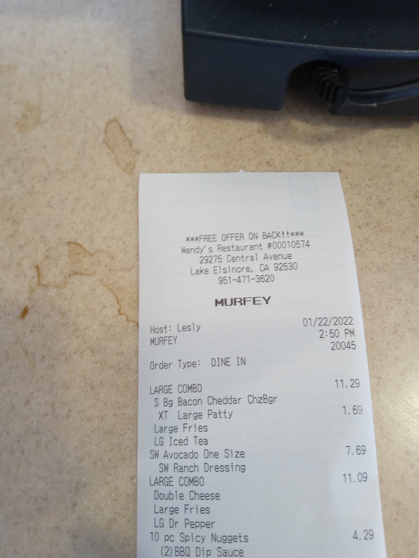 Read moreThis is the worst Wendy's ever. I had a terrible experience for the second time now. Usually I try not to go back to a place I have a bad experience at, it has been over a month since the last visit. The crew was craving chili and baked potatoes here on a rainy day and it sounded good so I decided to stop. First of all I spent forever at the speaker getting drenched in the rain with the window down waiting for the person to take my order, then she stopped and went away in the middle of taking my order. We ordered Three (3) small chilis with cheese and onions on the side, a classic bacon cheeseburger, and two (2) sour cream and chive baked potatoes. We received two (2) chilis, Two (2) potatoes with no sour cream, and a big bacon cheddar cheeseburger (the wrong burger). When they handed me the food the lady walked away from the window and didn't come back for me to confirm my order or ask for any additional items, nor did I receive a receipt. Will not be going back. on the other hand the new Wendy's in Menifee by my...