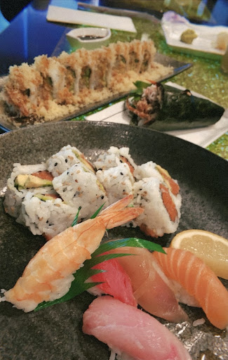 3/5 (Saturday), that day is so cold due to the wind and close to the water. It was a perfect day to go have hot pot, but the wait is a little long since we have a party of 9. We are starving and can't wait, we left and went a few doors down and ended up here. We got seated right away. Overall, the food is good and fresh. The service is okay, we have to ask for refill tea a few times and they also forgot one of the orders. Place a small place and tables close to each other. Price is reasonable We ordered many dishes, but I did not try half of it and too hungry to take all the pictures of foods My favorite yellowtail collar shioyaki Baked salmon roll - its good I recommended for non raw eater Salmon belly sashimi Salmon Avocado Carpaccio - I like this a lot Sexy Salmon Roll (Salmon Sashimi on Spicy Tuna Roll, Pickle Wasabi, Red and Green Tobiko, Ponzu Sauce) - Pictures look good but I was not aware it has spicy tuna. I am not a fan of tuna or spicy tuna. Others like this roll. I will go back if I am close by. I want to try Avocado Volcano (Baked crab & Scallop on 1/2...