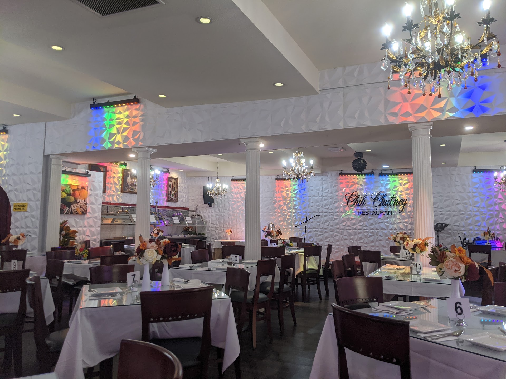 Inside: I personally liked the old layout of the warm color walls and seating compared to this disco looking white walls and rainbow prism lights, but I appreciated how clean it was, and how the stage was pretty. The vibe seems to be going for a venue for small concerts and mehmanis, which I think Mirage a couple blocks away is more well established for the job. Chili Chutney to me personally has always been somewhere I go with my family as more of a sit down place to enjoy some good Afghan food. But that's my take on it. I did appreciate that it was clean and well maintained.