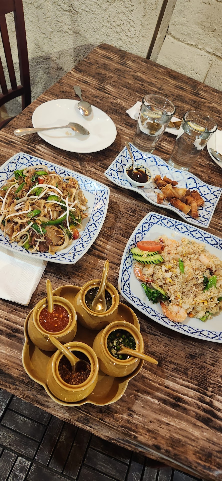 I order my food via their website and picked it up, but walking in, the restaurant itself was small and cozy so I can definitely see myself coming back and ordering to eat inside. I ordered the Pad See Ew with Chicken, Pineapple Fried Rice, Chicken Satay and Thai Tea. The food was delicious and really hit the spot. What really took the spot for the night was indeed the Pad See Ew. The Pineapple Fried Rice was really good as well but there was only like two shrimp. The Chicken Satay was good as well but I definitely had better.