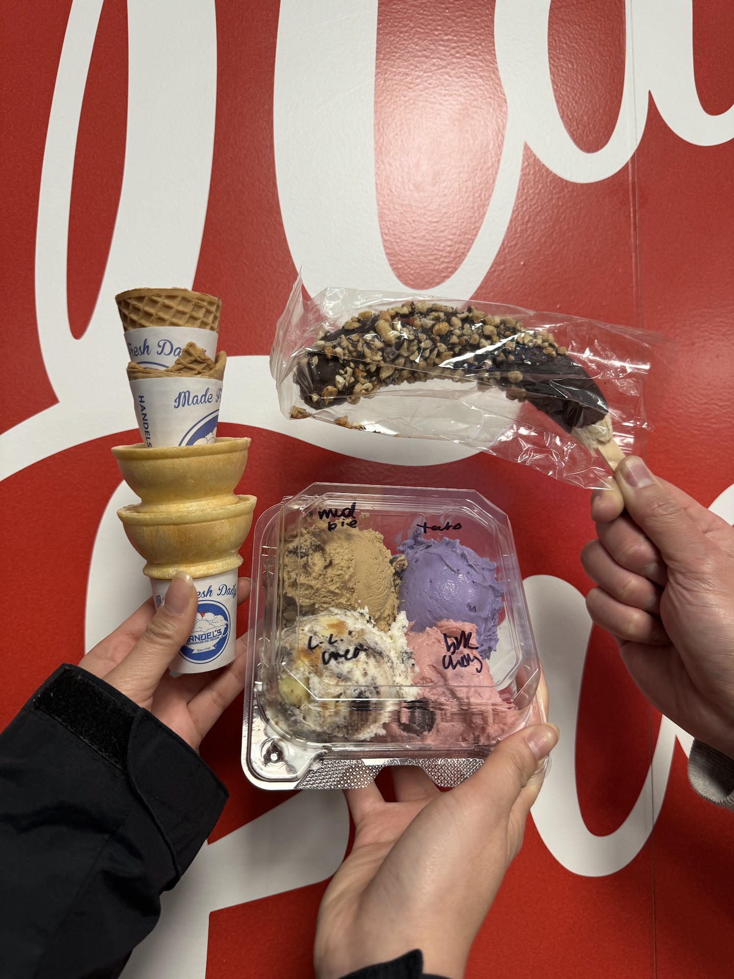 Read moreLike other intelligent reviewers stated, there's nothing special about Handel's ice cream (except maybe perhaps some interesting flavors such as pineapple cake). They're located in a great shopping mall with plenty of parking and a Smart & Final Extra! nearby, but Handel's ice cream prices are a bit too high and you can taste the apparently heavy artificial ingredients that leave a weird taste in your mouth (this is why Haagen-Dazs is still and will forever be the best ice cream in the world due to their evidently all natural ingredients). So Handel's ice cream's claims that they're the #1 ice cream in the world are apparently subjective and hyperbolic. Two other things that are stains on Handel's ice cream: 1. There are no pictures of their ice cream (except 1 giant one) and all their ice cream is hidden in nontransparent freezers in the middle of the store. 2. They have 2 cashier stations but they don't have signs indicating which station to order from (we came in to the cashier station on the left and the apparent shift supervisor with blond hair ignored us and went to the other cashier station where customers who came into the store after us were served before us). Disrespectful. But it doesn't matter to us, because this was our first and last visit to Handel's ice cream. Thank you for making it easy for us to forget about...