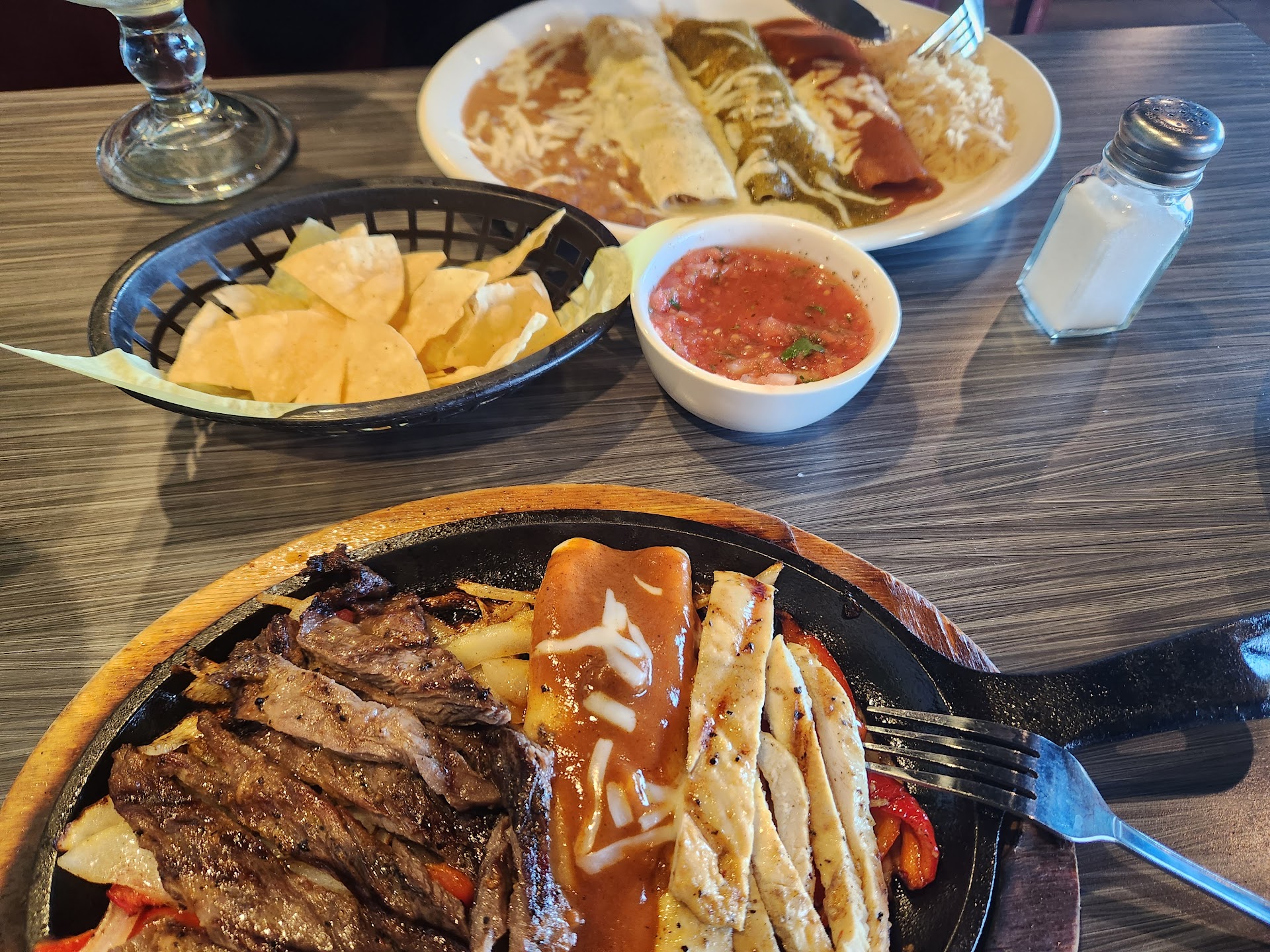 Read moreWe were served by a funny older gent who seemed to be the family patriarch. He and the other staff were attentive, helpful, and funny. They have great $6 margaritas 'for a limited time', probably until they get established. Everyone enjoyed their food - carnitas, burritos, pozole, quesadillas and others. The food was flavorful but not spiced at all. I am okay with this approach as I have kids and heat can keep my kids from being able to eat even kids meals at some restaurants, but I wish there was at least a little heat in the adult menu entrees. I can spice it up at the table, but I might ask if it can be done in the kitchen next time. We were brought small shots on the house at the end of the meal that were the cherry on top of our dining experience. Everyone else in the restaurant seemed to be enjoying themselves. Ambiance is family oriented bistro, definitely not date night. Adults and kids alike marveled at the flames from their tableside flambee of the fajitas and laughed along with shenanigans going on throughout the restaurant. It was like Mexican with the vibe of a very fun Greek restaurant if you have had the pleasure of that experience. We will...