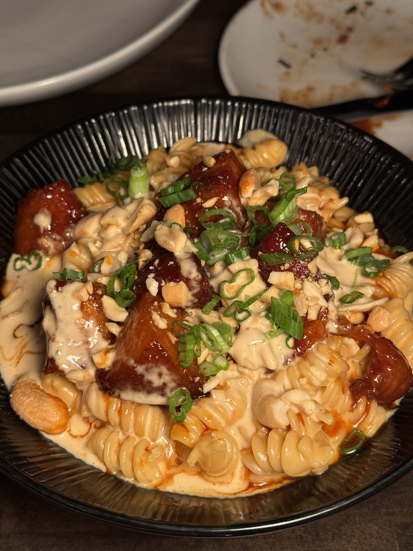 The space is cozy, and Lucky Duck relocated from a previous space into the Gallery in Lake Forest. Started off with some Black Garlic Deviled Eggs, these were extremely creamy, sweet, and addicting. The small plates like duck & bacon wontons were crunchy and sweet too. If you see crispy Brussels sprouts on the menu, chances are they’ll be good, and I’m happy to confirm that that philosophy was upheld here. Their Bulgogi Fries were topped with Korean beef, white cheddar sauce, sesame seeds and scallions, their sister restaurant The Peanut Gallery also does some good fries. Now time for their Bao Buns because I think getting Bao Buns here is critical to experience both some soft texture and juicy flavors. The Big Pig is awesome, the coconut shrimp is super crispy, and the soy marinated steak was my favorite out of the 3. Now for the larger noodle bowls, we got all 3 options because more carbs means more happiness. The Mushroom Udon had a miso vinaigrette and their thick noodles are delicious here. Spicy Lamb Ragu had a medium heat level and was a cool bend of italian and japanese flavors. Now my favorite item of the entire meal was the Mac & Cheese that had red dragon pork belly cut into cubes, and it was creamy, milky, and I could’ve crushed that dish by myself. A large plate that we had fun eating was the Hanger Steak Ssam, which is their take on the Korean food where you make lettuce wraps with different condiments. Loved their cook on the steak, but it was time for their hyped up donuts. These had mango & tahini curd and covered in black sesame sugar, unreal doughnuts. Also their yuzu coconut cake was mildly sour and sweet, and overall we were very pleased...