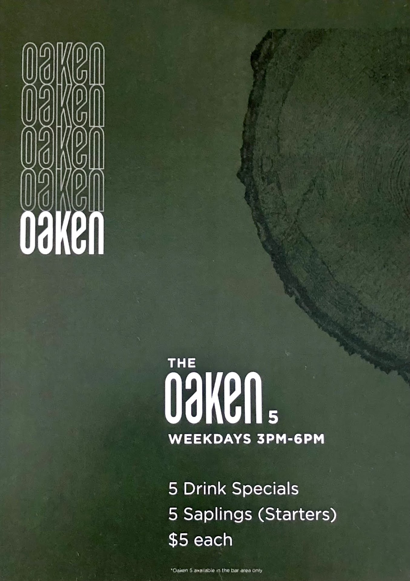 Here’s a bit about the venue: Oaken Bistro + Bar is a modern, upscale American bistro located in Lake Forest, Illinois. It offers all-day dining with a menu that blends elevated American classics, such as burgers and salads, with globally influenced dishes like Beef Tenderloin Empanadas and the Cubano sandwich.