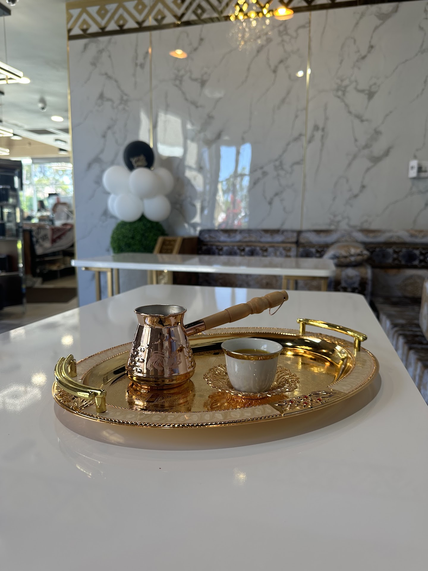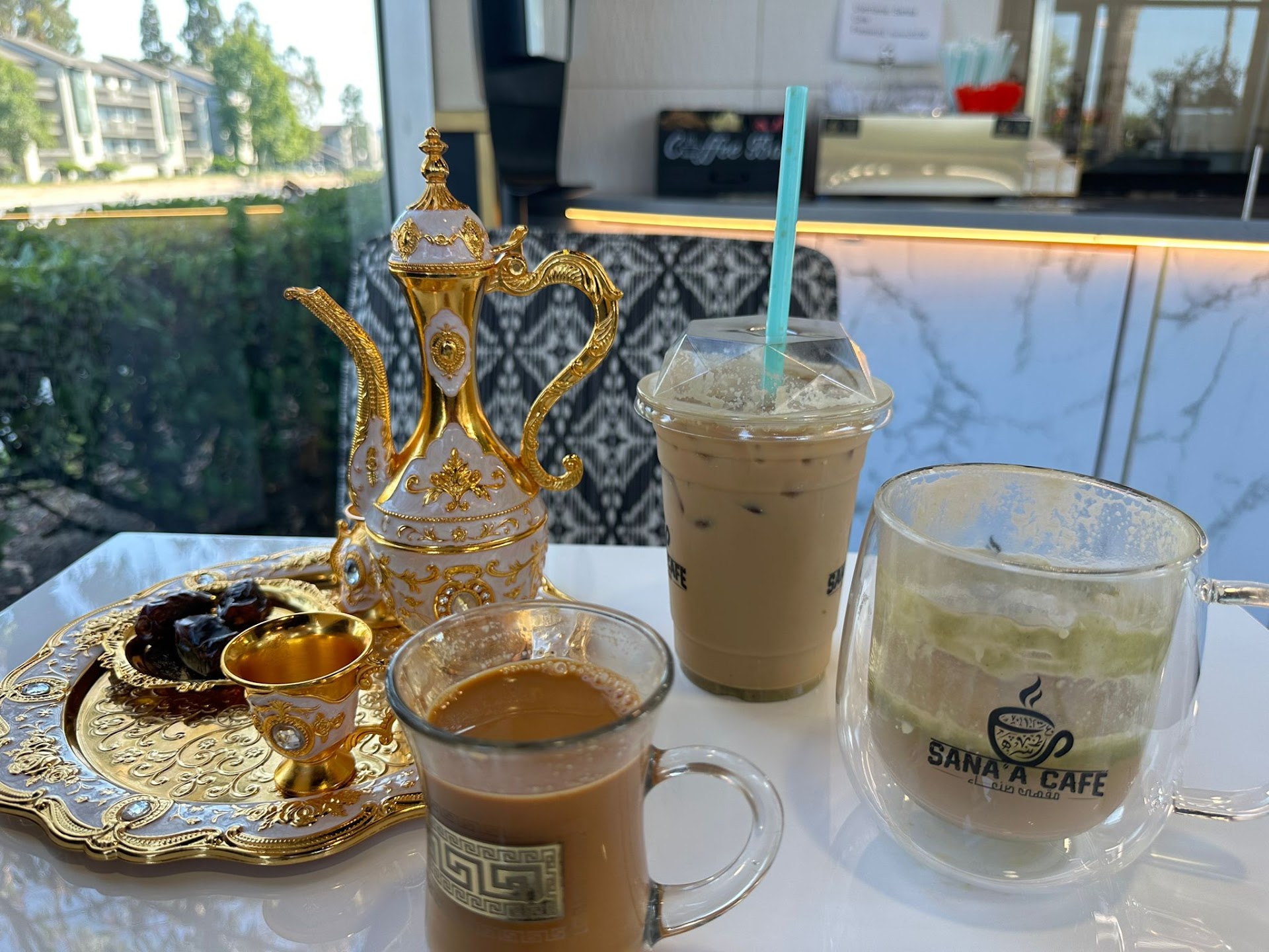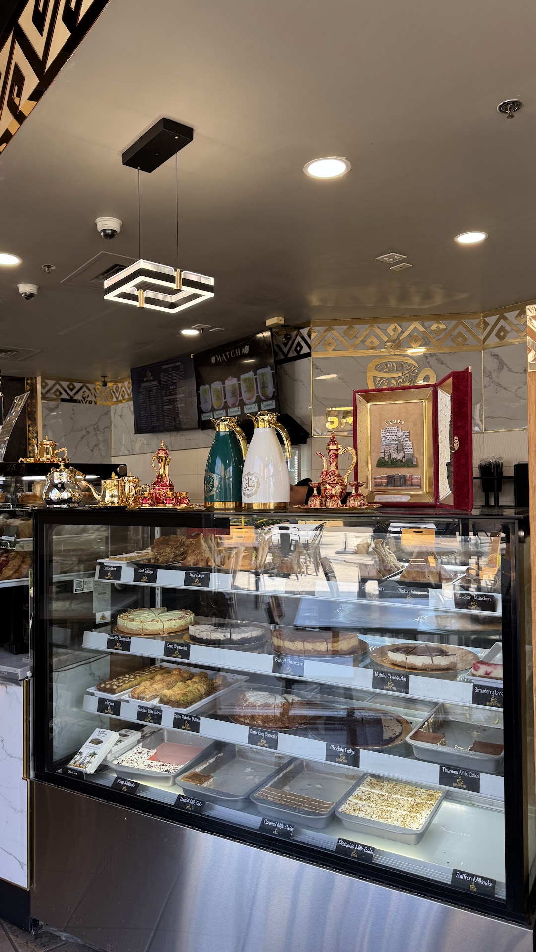 Read moreLittle middle eastern coffee place...omg the coffee is amazing...not what I expected when I first walked in. The place was packed... I'm white fyi if that matters... but I ordered a white mocha and a vanilla latte... and typically small coffee shops like this can sometimes have bland espresso drinks with little flavor... not this place... they have a light to medium roast they are using... and if not ground and brewed right can leave the coffee tasting poorly... when I saw the roast I was skeptical because it can be a harder roast to work with but man they do a really nice job... the brew was perfect. The flavoring wad perfect... definitely a must try if ur into good coffee or teas. They also have a variety of middle eastern inspired sweets. Aswell as a host of cheese cakes and some delicious looking milk cakes similar to a tres leches. I order the baklava and banana pudding both very good... Give it a try they...