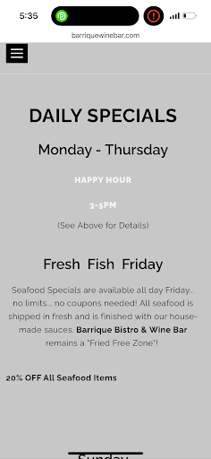 Read moreFalse advertising, no integrity, zero accountability, and disrespectful management : We went to Barrique after seeing their website advertise half-off appetizers — it was clearly listed and directly influenced our decision to go. When we received the check, we noticed the discount wasn’t applied and asked for it to be corrected.