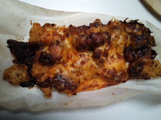 The pizza arrived cold, though we are 5 minutes away from the location (less than, if you don't hit a red light). The dried out, shrunken boneless chicken was covered in more burnt cheese than BBQ sauce. We put them in the oven to reheat them (both to hopefully make them palatable and to ensure they were safe to eat). In the end, both were edible, but not at all good (hence the single star).