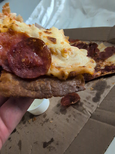 To be nit-picky: The sauce tasted like the standard sauce (instead of the marinara I ordered). It was also really light on mushrooms (though we did order "normal" mushrooms) so, if you do decide to order from this location and want mushrooms on your pizza, you may have to order "extra" mushrooms (and pay the additional fee) to get more than one mushroom piece every couple of slices.