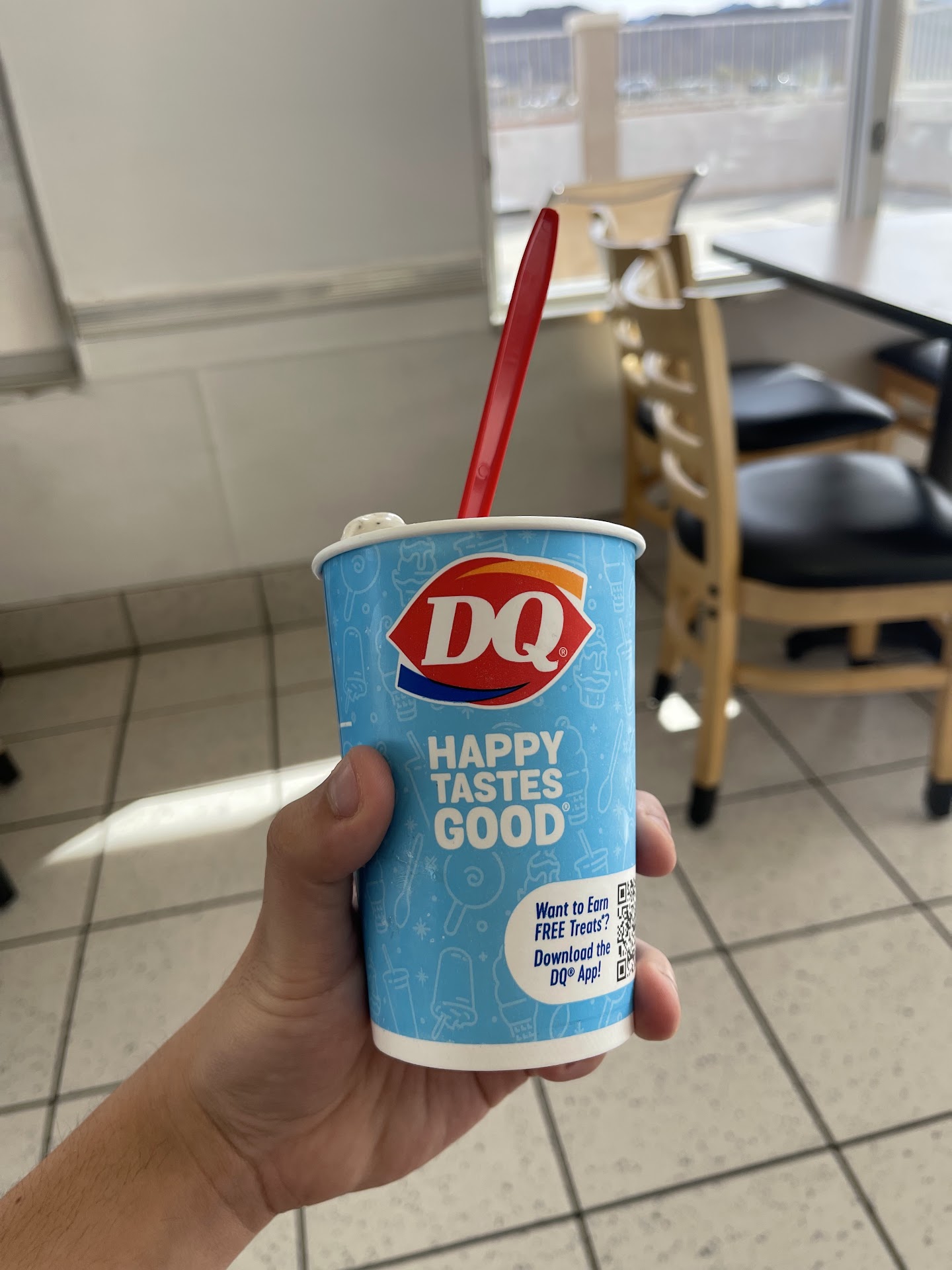 Read moreSuper disappointed. Went to DQ about 330ish today. The speaker on the drive through was hard to hear what the young man was saying and I assumed he had trouble hearing me. There was a car that was pulling around to the window as we waited to give our order. I ordered a small Reese's blizzard and a medium chocolate dipped cone. We pulled around front and the car in front of us was still at the ordering window. We waited for about 10 minutes (enough time to listen to 2 full songs on the radio). The young man gave me my blizzard and it melted to the point it was almost like a milk shake. Then he left and I assumed he was making the cone. Nope. He returned about a minute later with a medium cookie dough blizzard that was also melted like a milkshake. We looked at our receipt and that was what our receipt said so he heard our order wrong. Instead of going through the hassle of refunding the blizzard and ordering the cone, we just took the blizzard and left. We...