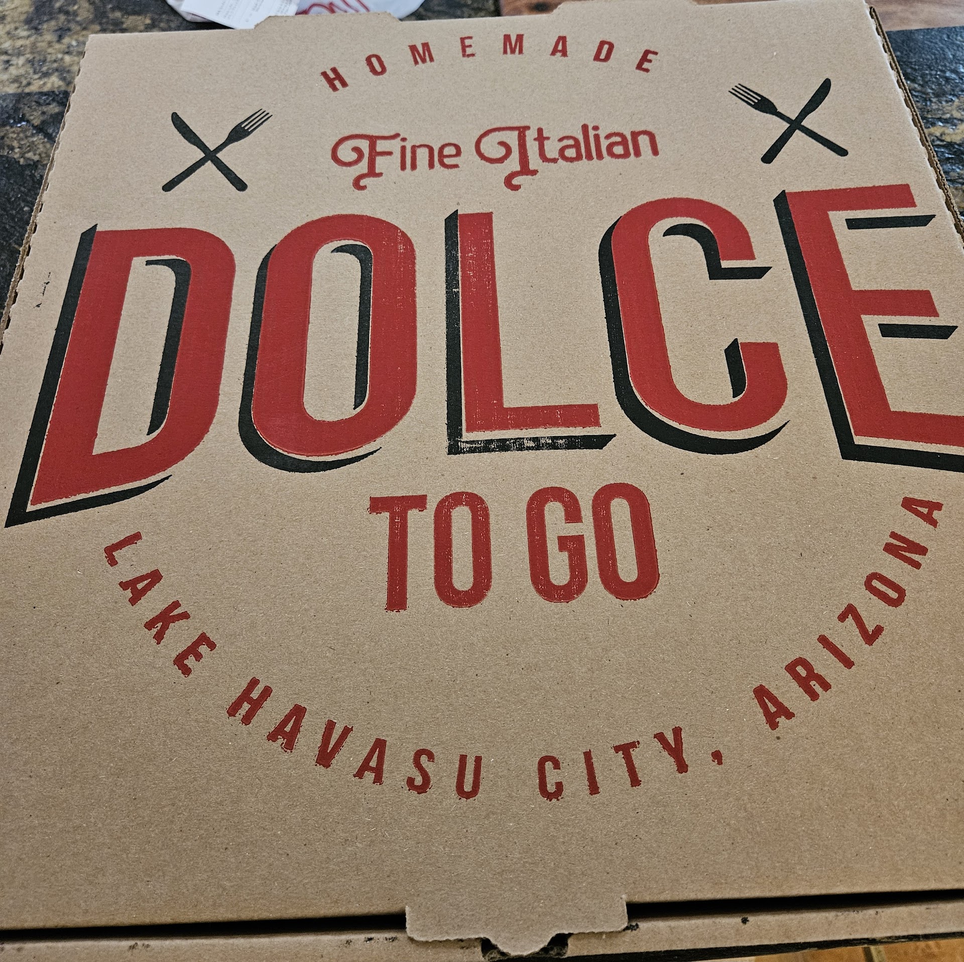 Read moreWe stayed at The London Bridge Resort. Dolce-To-Go is right down Swanson about 4 blocks. Very nice menu with pictures that represent what you find when you open the boxes. Simply Put, "The Pasta, Cheese Toast, and Pizza was FANTASTIC"!!! The only glitch and reason for the four stars. The driver couldn't find "THE LONDON BRIDGE RESORT"??? The guy has One Job. If they were on the other side of town, maybe. But, FOUR BLOCKS AWAY. We were in the lobby at 6:30pm for a 6:40pm delivery. 7:00 pm we get a call, the driver can't find "THE LONDON BRIDGE RESORT". WOW, so he blew a ten dollar tip. So FOR Great Italian Food, DOLCE-TO-GO for a fur sure good meal. BTW, we live one and a half hours away from Lake Havasu, and come here a few times each month. DOLCE-TO-GO will be our place to pickup dinner after a day spent in...