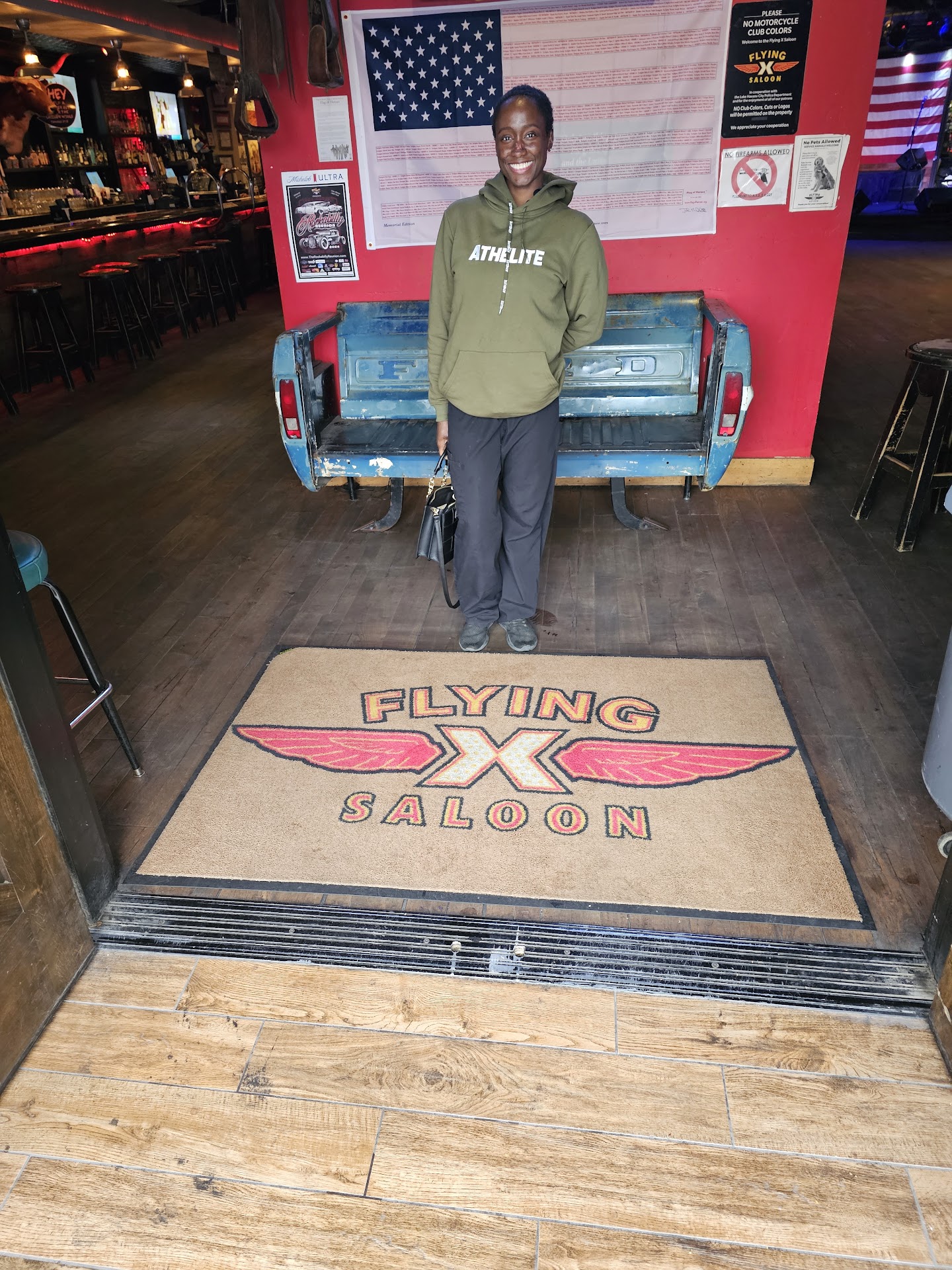 Whenever I want to go out and have a good time I always start at the Flying X. The food is good especially the garlic parmesan wings and potato skins. The drinks are delicious and a little strong. They have a good beer selection. And the staff here are ALL very friendly. From the bartenders to the servers you can be sure you will be well taken care of. Tuesdays thru Saturdays the place is kickin. The have great live bands and dancing. The Flying X has a country atmosphere with a little rock n roll. Mondays are karaoke Tuesdays you can learn line dancing and Wednesdays after 5pm you can see around 30 or more beautiful Harleys parked out in front. And the bikers are gathered in side having a good time. I would estimate most of the bikers are baby boomers. In fact I would have to say average age group on any day is 40 and up. But the weekends attract a younger lively audience mostly out of towners. Lots of fun for everyone at...