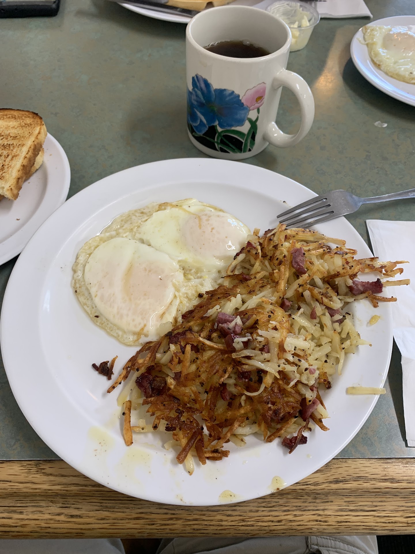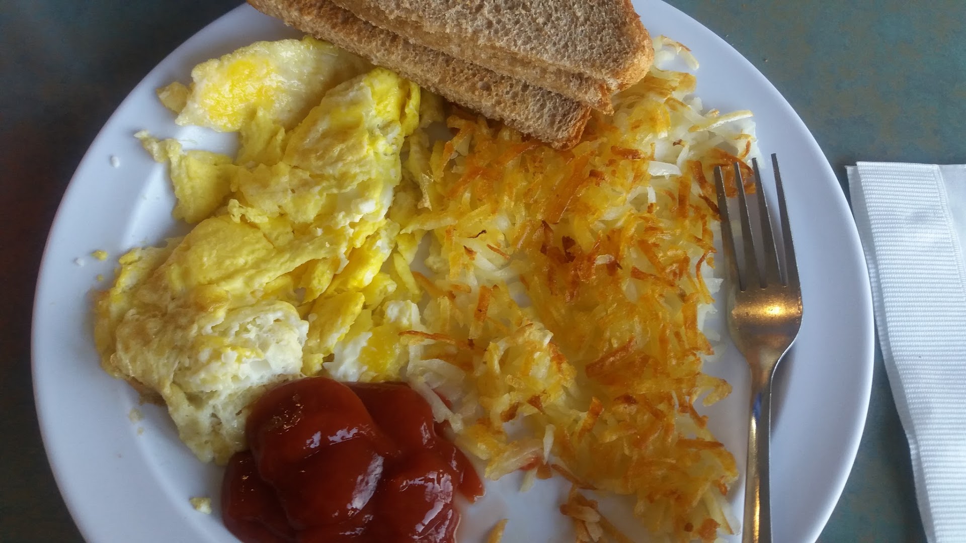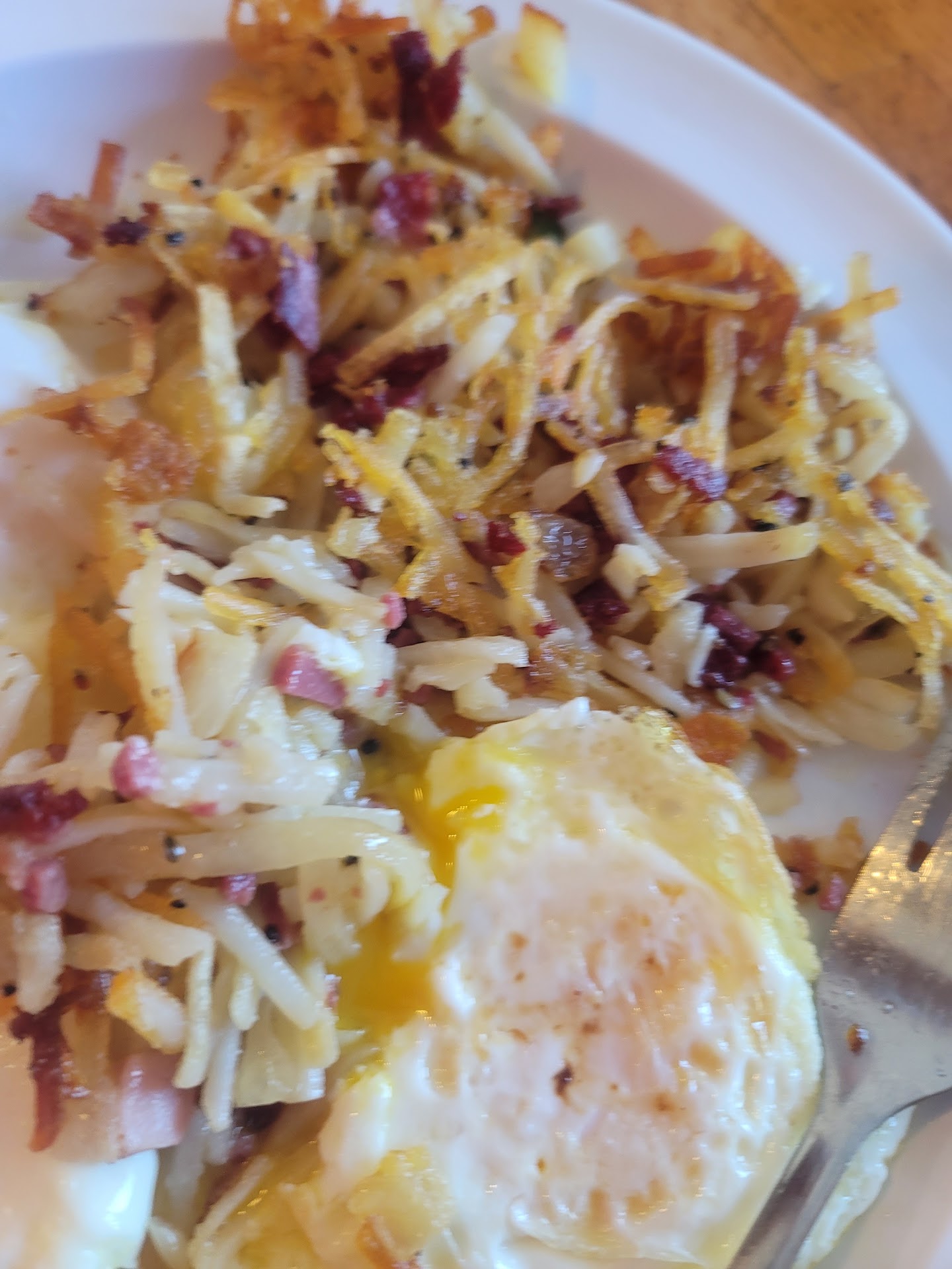 I ordered the scrambled eggs, and they tasted like Egg Beatersâsolid yellow with no whites at all, almost like boxed eggs. Not great. The biscuits and gravy I got were also disappointingâthe biscuits tasted freezer-burned, and I stopped after a few bites. My wife ordered over-easy eggs and sausage, and unfortunately, she found a hair in her eggs. To their credit, the staff did take her meal off the bill.