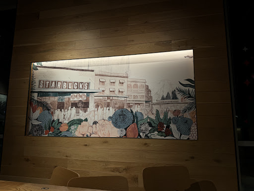 Read moreI came an hour before closing for a change of scenery for work I do from home. I grabbed a chai tea and a water as my drinks of choice. This Starbucks has quite a bit of seating and is well arranged. Nicely decorated. I really liked the wall of city mugs on display- really neat to see. They also had fun art work around which created a cozy setting. The staff were very friendly although it seemed quite busy. It took a little bit for them to make my drink but they were so kind and apologetic about the wait. The guy even brought me it to my table. I didn’t mind waiting- I wasn’t in a rush. They seemed overwhelmed which I don’t blame them, but they got through it with smiles on their face. The space was clean and comfortable. Good wifi connection. I quite enjoyed my short time here and...