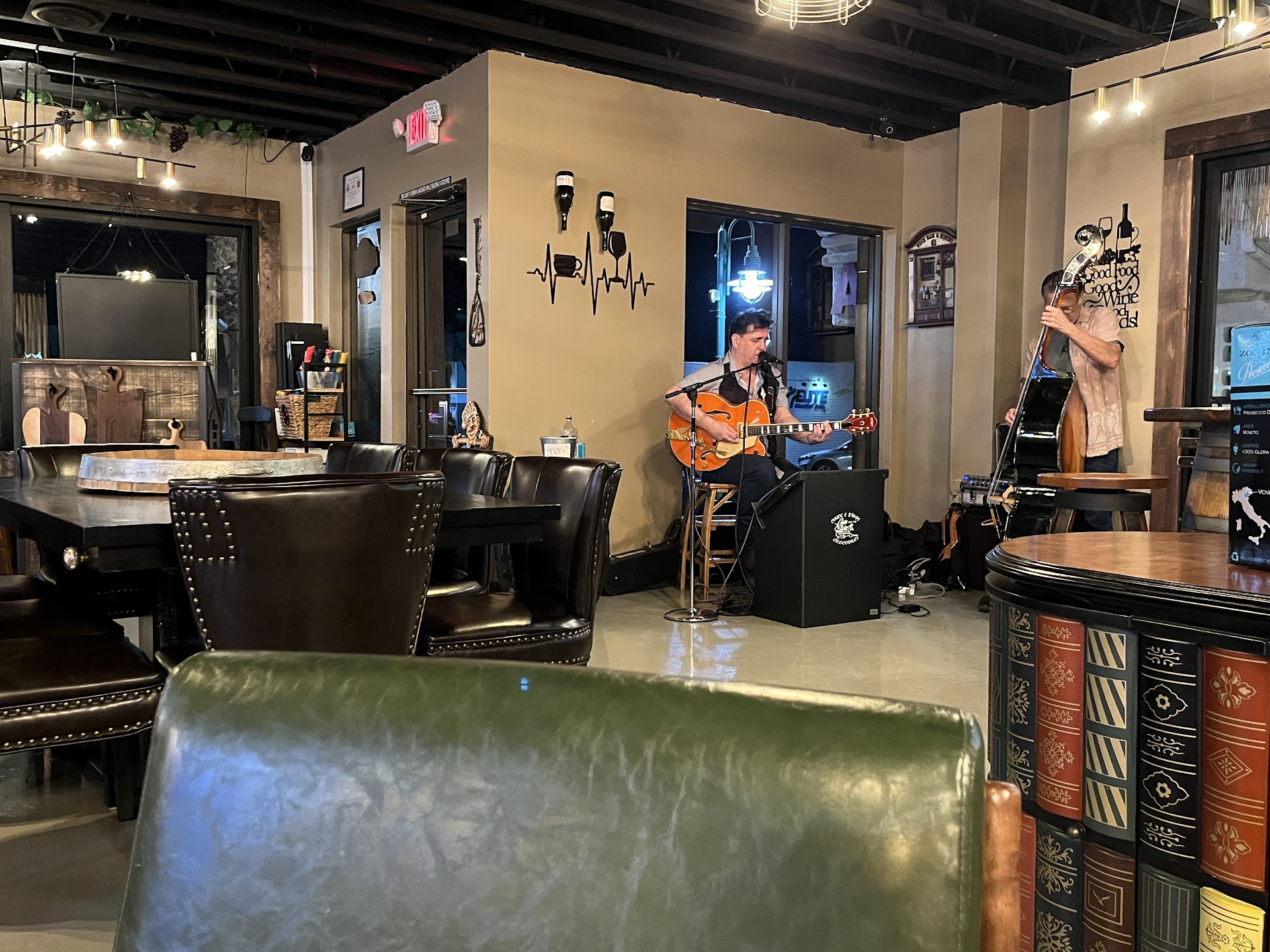 Read moreThis chic little establishment is a welcome addition to LHC, especially for those of us who prefer to drink fine wine! (They also serve beer). The decor is upscale and eclectic, with an antique car as the bar. The full selection of wine is enormous, but I am usually happy with whatever they are pouring from behind the bar that day for $6 a glass. Also, serve yourself wines are available at the wine bar in tasting size and 6 oz options. It's a great way to try a number of different labels. Their red and white sangrias are very popular. The charcuterie boards are amazing and always a hit with a group. Plus the daily panini and other specials make for a lot of variety. Live music on occasion makes for a wonderful ambiance and adds to the upscale sophistication. I have been there with large and small groups, with an occasional miss from the service end, but I'm willing to give them a pass as they continue learning new systems. If you pay by credit card and enter your email for the receipt, you will accumulate points that can be turned in for credit on future purchases. Its a great...