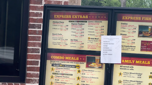 First off let me say where I grew up chicken Express and Bush's chicken are the only places worth buying chicken from so I was estatic I would have a little piece of home here. I have never had a problem with either of them in any other place but Lake Jackson. I have been there a handful of times and only once did I not have an issue with the food. Well this time is the absolute LAST time I will eat chicken Express. At 9 on Friday I went threw the drive threw and got a family pack of tenders I should have known something was going to be wrong when the warmers looked turned off and everything was being cleaned although they weren't supposed to close for another hour. 30 bucks later I got home and opened it. The Mac and cheese looked like it was from 2 days ago as well as the mashed potatoes both of which were partially cold. Mind you i live only 5 min away or less. The tenders had a almost flavorless taste and weren't hot or fresh tatsing. I called and spoke with a manager and she was professional and nice and offered to replace the meal, but I had enough poor food from chicken Express. Needless to say we ended up with food poisoning. Even my dog. 200 vet bill, 100 plus in carpet cleaning, and a missed day of work later I'm furious. I would advise anyone to stay far away from this establishment. Either the food was old, bad before it was cooked or possibly all of the cleaning supplies being sprayed contaminated our food....