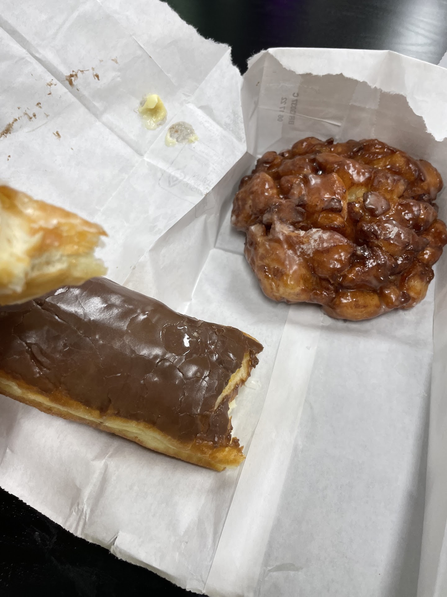 So the baker gets here early… and the shop opens at 4! If you’re lucky enough to come enjoy donuts hot off the line- wowzers they do it right!! Apple fritter it crunchy outside- soft inside (I could use another piece of apple or two), the yellow filled bar is a different level of good. I have found my go to for...