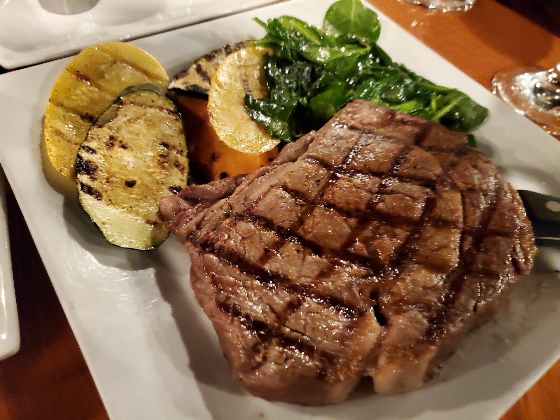 I did a cheese platter with all the options. They were out of my favorites that i personally stock at home to pair with wine but the runners up were more than adequate. I'd prefer larger cuts of cheese but i come from Eastern European foods. We love bread and cheese. The kabobs were great, shrimp being cooked at same time as beef left them slightly past done but the flavors made it work well. Chicken parm with the alfredo accompaniment was very unorthodox and brave in execution but a winner as well. The ribeye was fantastic and when I asked for rare I actually got rare. Wow. Big points for proper grill Marks on steak and veggies.