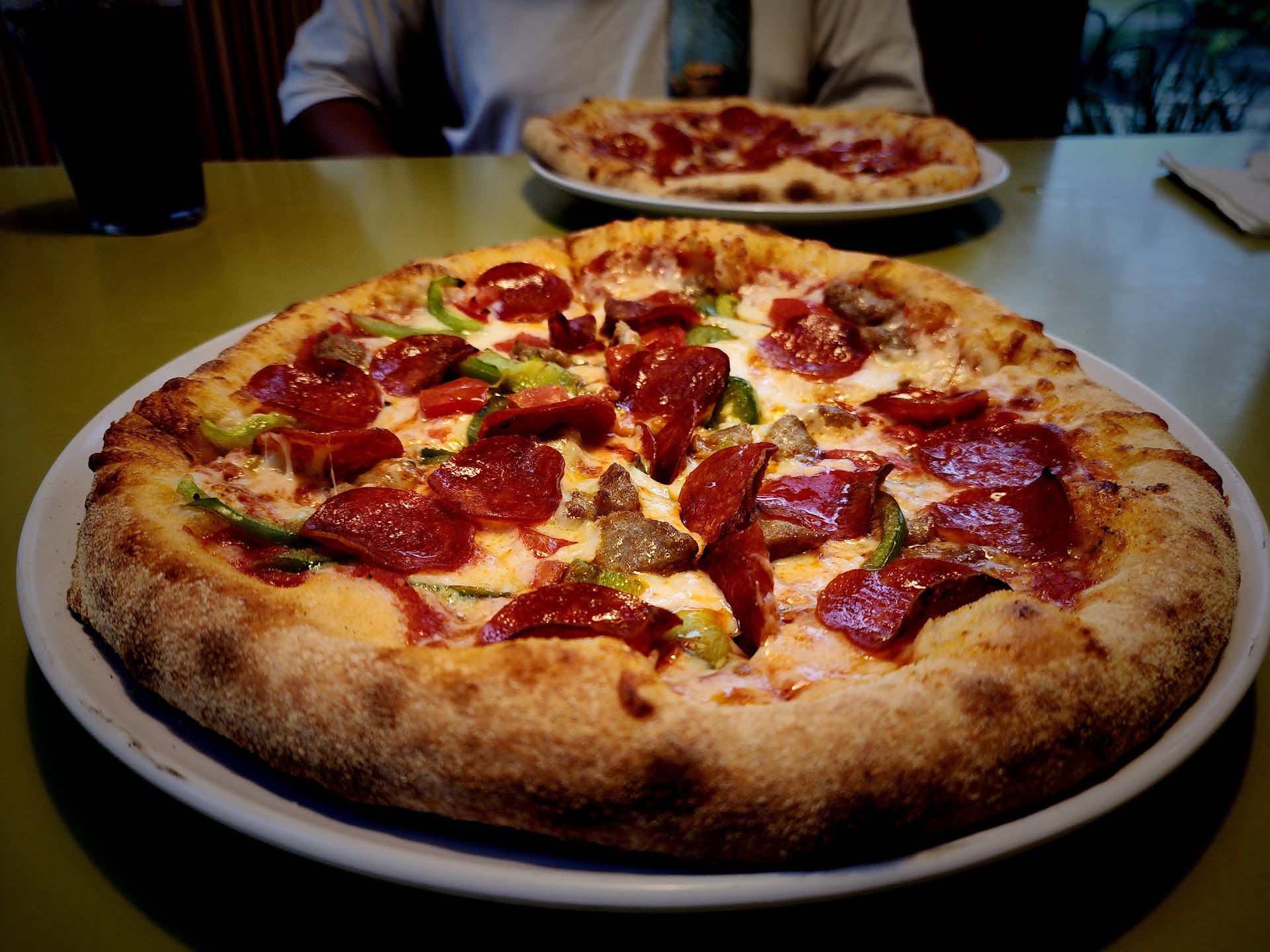 First trip the pizza was good and I liked it. We had ordered two smalls and an order of cheese sticks. The cheese sticks came out super greasy with the garlic butter dripping off of them and onto the paper they had beneath it to get the excess. Way to much in my opinion. The pizza came out and we enjoyed them. They were good(which is why I gave 2 stars instead of 1). The service though was slow, we seemed more like a burden on the waitress and our $2.50 soda drinks were never refilled.