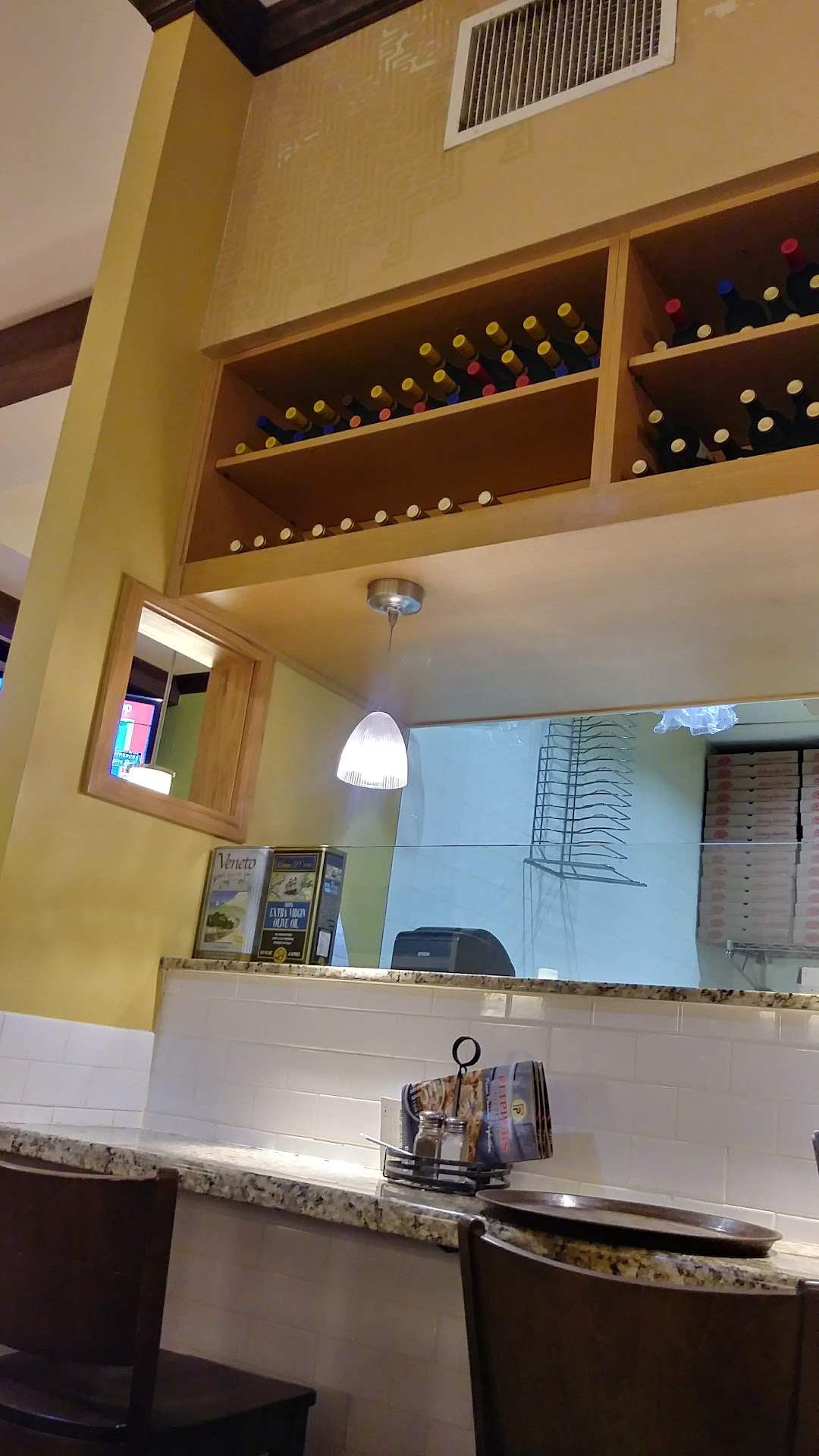 Second trip we had a different waitress. We ordered bread sticks and 2 calzones. We never got the bread sticks as she had forgotten to give the order to the cook(we heard the conversation and argument they were having) and then came out and blamed it on the cook. We just cancelled the order for those as we didn't want to wait for them another 15 minutes. The calzones were awful and bland. Basically dough, cheese and toppings. Even a little bit of spices on the top or a bit of sauce inside of it would have made it better. Again, we did not get a refill on our drinks even when I asked she walked away. We were offered a refill after we were done but by then our meals were finished. If the calzone was good I would have given this place at least 3 stars.