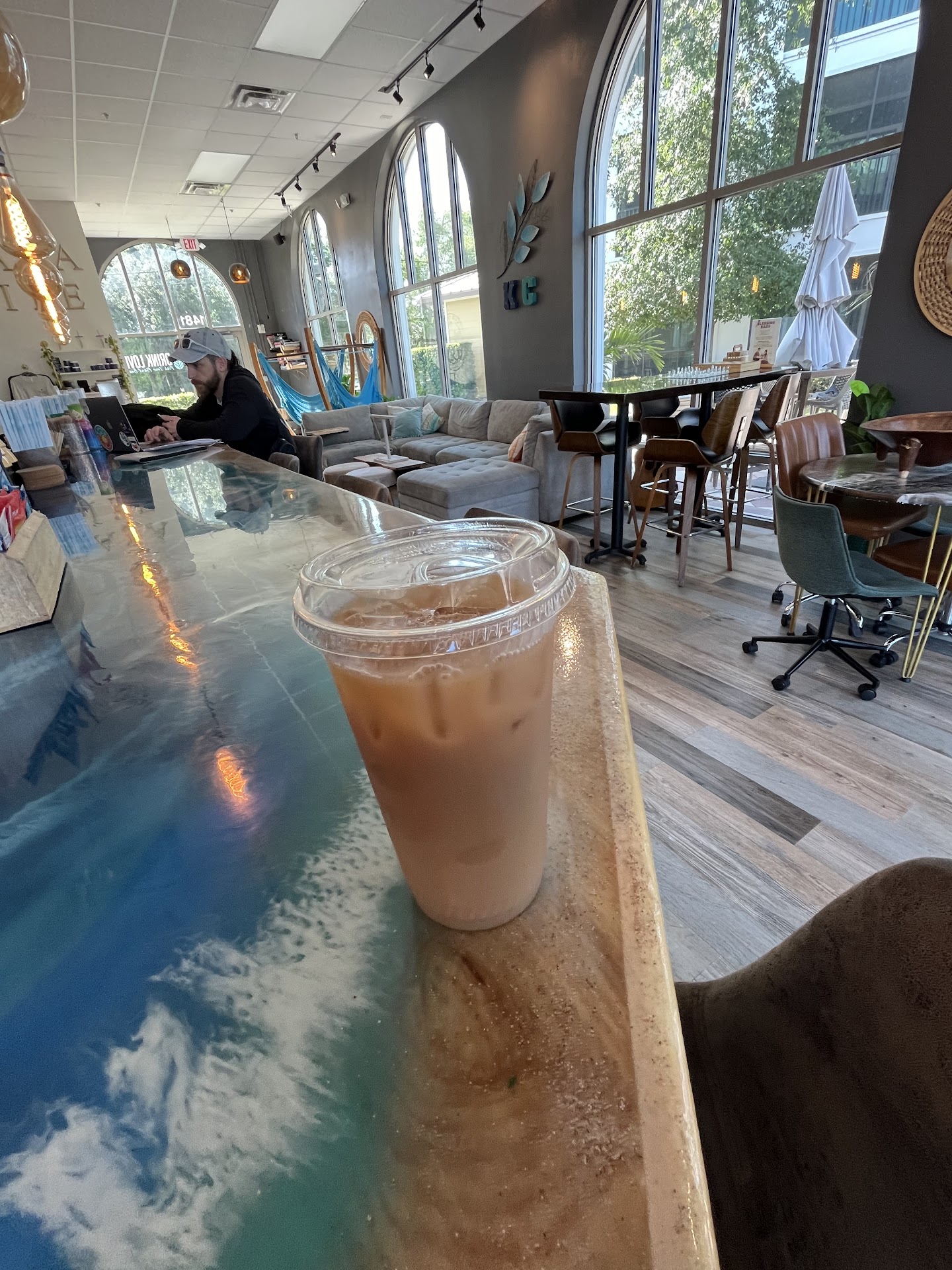 Read moreNice people, solid atmosphere. Kitty is the best kavatender at this location, she is also kind, patient and understanding of the gibberish I speak in the afternoons. Additionally she always makes me some sort of delicious coffee drink, i tried a pistachio cold brew thing the other day and it was hella tight! The white vein sugar free raspberry on tap is also really great 👍. The manager dude is also a real nice guy, our conversation has been minimal, but he has been helpful whenever I asked questions and he is always there working his butt off to make sure the guests and everyone is having a great experience. Prices are kinda expensive, but the happy hour makes up for it. I feel like this has kinda become my spot to study and converse with the locals, occasionally someone from nextdoor comes in and we get to talk about cookies or taste some so that is another strange and oddly satisfying bonus. I would recommend this place to everyone and they're starting to have MOVIE NIGHT, YESSSSSSSS!
