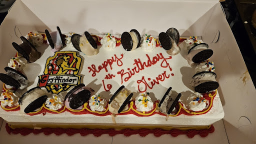 Our local Baskin Robbins in downtown Lake Orion did a spectacular job on my son's birthday cake this month! Their edible paper printer was broken so they gave me options of how to print myself, and also offered to decorate by hand as best as they could. They knew my son wanted a Harry Potter cake so they made the Gyfindor crest in chocolate and it was such a hit! The cake was ready for my dad to pick up 10 minutes late which wasn't a big deal because it was a lot more work to decorate by hand than they had planned. The decorative cookie sandwiches did melt by the time the cake got to my freezer so I will not order that design again but that's my own fault, not theirs! 9/10 would recommend and will be ordering my daughter's cake for next monthf rom...
