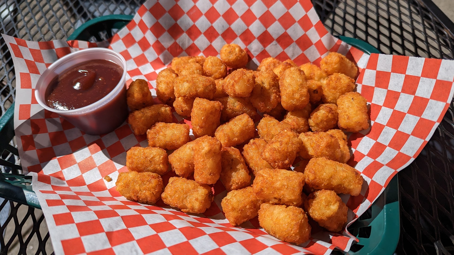 Read moreWas looking for a place to get a quick lunch on a weekday and sit outside, and this place was perfect for that, not too crowded and had several tables for outdoor seating. The food was really good and fresh. We got tater tots, salad, and coconut curry with rice soup. The tots were crispy, just how we like them, but the coconut curry was our favorite thing we ordered. Highly recommend, especially if you are on your lunch break on a weekday.