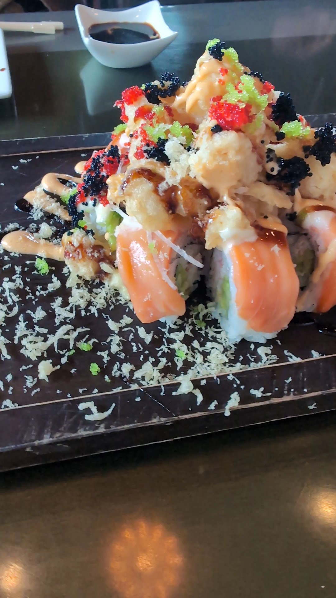 The restaurant itself is small. Pre Covid would seat about 7 tables total (excluding sushi bar). With Covid guidelines in place there was about 4-5 places to sit. If going during a lunch or dinner time it might be prudent to reserve a table in advance.