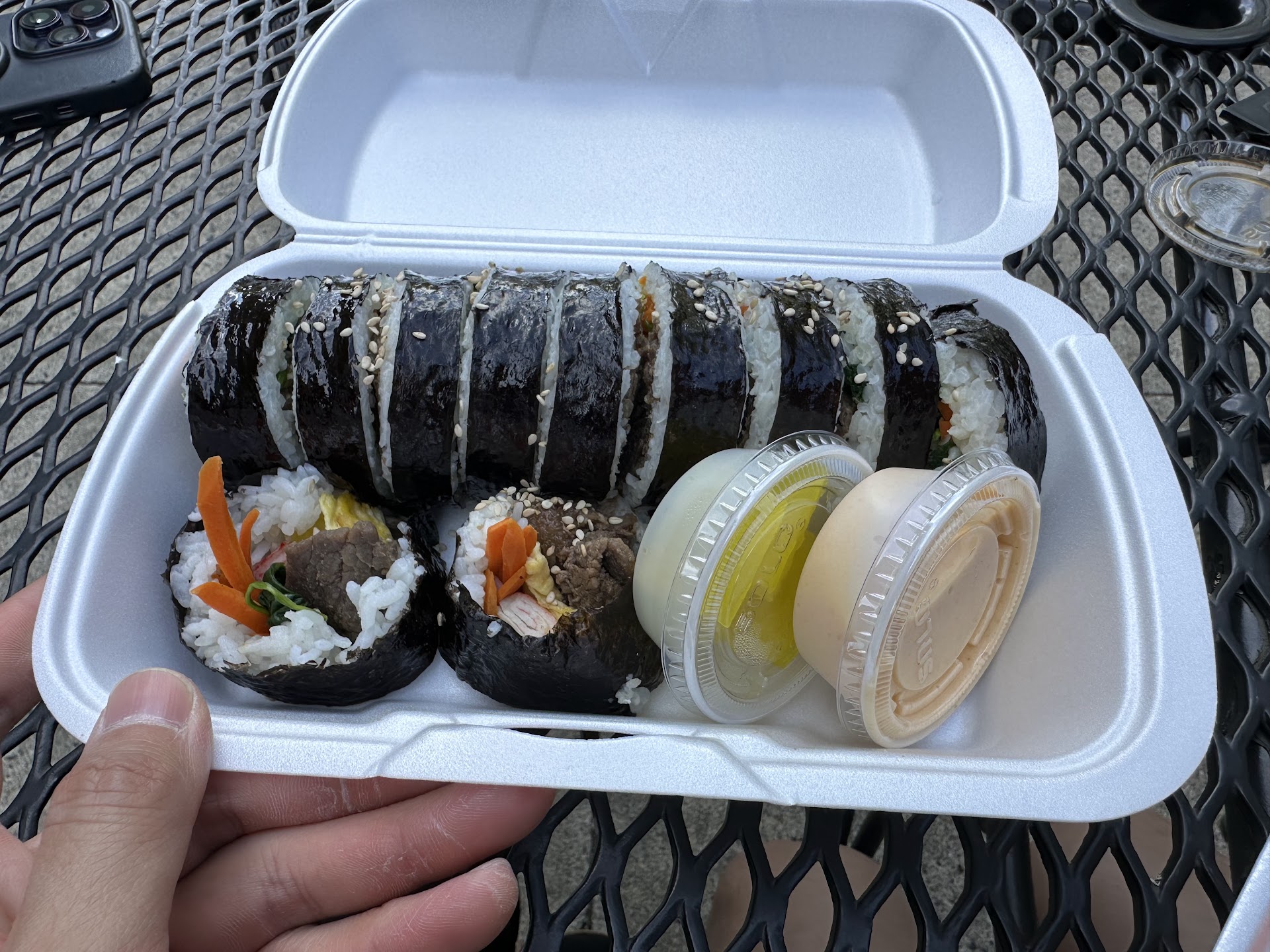 My main suggestion - call in your order. I rushed it through Google and realized it’s actually only $10.95 for the kimbap vs. $12.95 reflected on Google’s ordering.