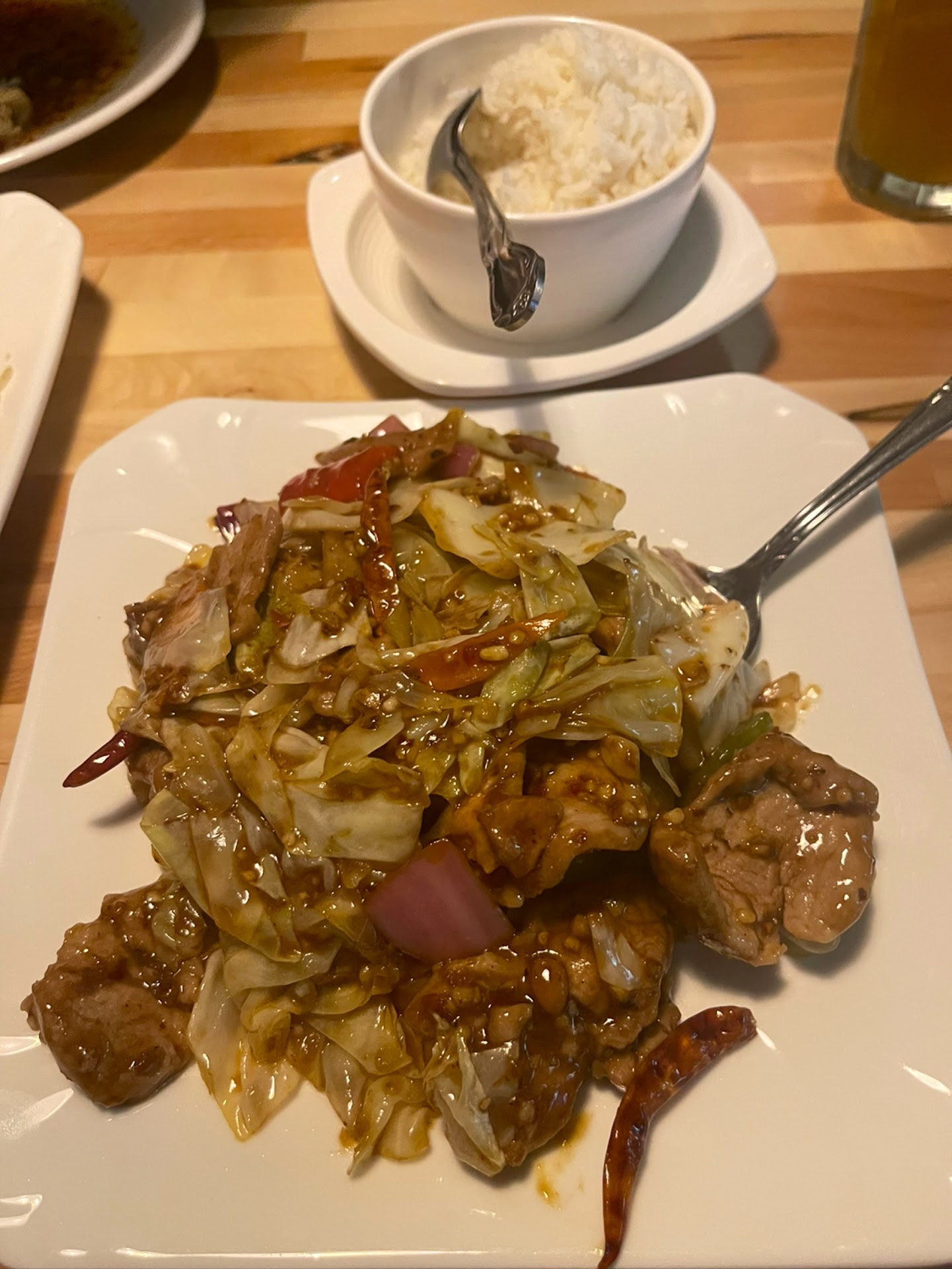 This tiny establishment is so cute and the food was delicious! The server was very friendly and helpful with our menu questions. Potstickers had a delicate well seasoned filling and a nice thin wrapper. The Mongolian Beef was one of the best we've ever had! It was melt in your mouth tender and included lots of onion, which we love. My only critique would be, the fensi was stir fried in, as opposed to garnished on top, so it lost its crunch. The Green Bean Chicken was spectacular! We chose the Spring Rolls as the included side with both entrees and they were nice and crunchy- not greasy. Their jasmine rice is good and sticky too! The Egg Flower soup was a miss for us. It included small pieces of rice noodles and we would've preferred a more egg forward version. The entire menu and drinks are VERY reasonably priced, which in today's economy is a breath of fresh air! My only reason for 4 stars on atmosphere is, the floor leading to the restroom was VERY sticky. I had to clean the bottoms of my shoes with a wet cloth. ;-)