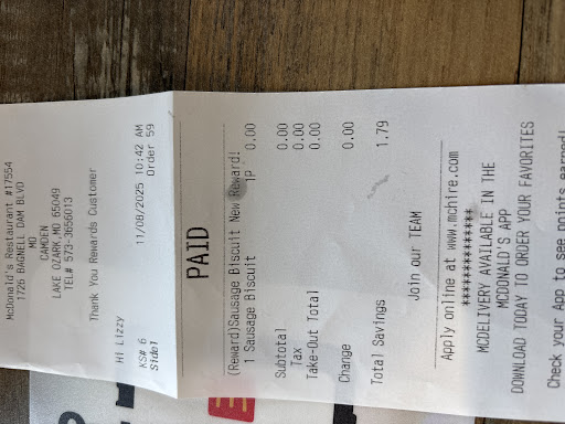 Read moreMy son and I frequent this facility as it's not generally overrun with customer's but tonight my service was off. I witnessed over a 30min period a young employee being belittled by management and other employees. Yes, the young man not up to par and just wanted to leave but it is my experience that good management gives encouragement in a job well done as well as find faults and areas that need improvement. Tonight when I spoke with the shift manager to explain my displeasure in how this particular situation was handled with bullying , he provided excuses while I felt I was giving helpful criticism. I myself had the pleasure of working at a McDonalds many moons ago while I attended high school. It was and is with great fondness, all due to a manager that didn't put me or my actions down but lifted me up with kindness and guidance. I hope it was just an off night for all involved and that on their next shift they'll do things differently. If not, I will no longer be willing to put myself in those kind of surroundings and will drive to Camdenton instead when I...