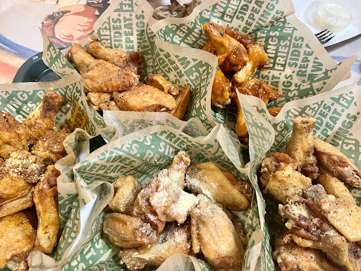 Tonight Saturday March 9 at 10:33pm I walked out of this wingstop to my truck to wait for a family order of 40 wings, fries, carrots, celery, and ranch excited that I was going to have good wings like the week before when I bought 75 wings in a family pack at this same location. But, what a disappointment, waste of money and time. When we got home we noticed we didnāt get the veggies and to top it off we didnāt understand why the wings had a horrible after taste that we couldnāt figure out. After eating a few I realized that taste was probably of very old burnt oil that tasted fishy. I could not eat them at all because the taste was just horrible and tasted fishy and my husband was extremely mad that I had spent almost $60 on wings we couldnāt eat. To top it off a few of the wings had feathers as shown in the pictures! I literally was plucking them out, I honestly canāt be making this up! I donāt know where management or owner was but you canāt be serious to serve people this and to give orders incomplete. Very disappointing. Also the cashier wasnāt welcoming at all and expected me to just start ordering without her saying a word and just giving me the stare! when I started talking she couldnāt even understand me either way because she seemed to be on the phone with a ear piece just talking to I donāt know who. At some point she had to tell the person she was on call with to wait because she had a costumer in front of her and so she told me to repeat everything I had said again. Everything was just wrong...