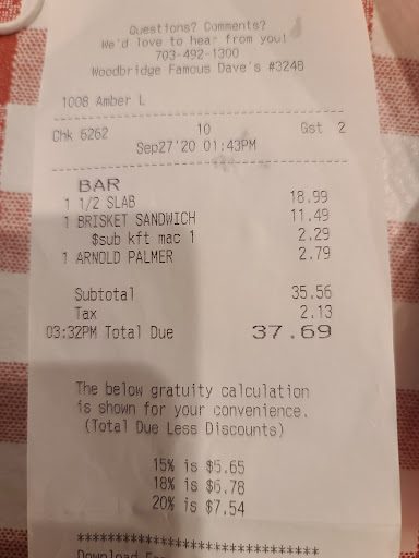 My family and I have enjoyed meals at Famous Dave's on numerous occasions, always appreciating the delicious food and inviting atmosphere. However, a recent visit to place a to-go family meal turned into a nightmare that I cannot easily forget.