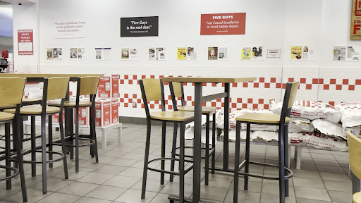 Read moreI used to eat Five Guys Burgers monthly. Now, I eat at a Five Guys about twice a year. They’re usually good, but it seems like over the years, the quality of the food has gone down and the prices have gone up. This location is a good example of that. The burgers didn’t look great, but they tasted pretty good. We ordered the Cajun style fries. There was way too much seasoning on them! Like, an insane amount of seasoning. Three burgers, drinks and a large order of fries was $60. The restaurant was pretty clean, but the service wasn’t particularly friendly or fast. This location wasn’t bad, but I would say it’s below average for other Five Guys Burgers locations...
