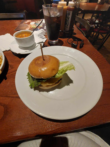 First, let me preface this by saying I'm a SERIOUS, SERIOUS BBQ FAN. I have literally gotten on a plane just for good 'Cue. That said, sometimes you just want to satisfy a craving when you're traveling and Smokey Bones did the trick! Went in when it was dead (Monday evening around 10:30PM) and it was me, a cute couple and some girl sitting at the bar mutually flirting with the bartender. I knew what I wanted. (Pulled Pork Sandwich with 2 sides (slaw and bbq beans) and a Coke.) The waiter (a VERY polite and attentive young man named Josh I think) took my order and made sure my drink was topped up without invading my space or checking up on me far too much. The pulled pork though... It was VERY tender and slightly smokey and VERY flavorful, almost not needing any sauce while being a great vehicle for my mix of Kansas City and Carolina Red sauces. I also put some of that slaw on top. Made a heck of a mess of myself and ruined a good t-shirt but it was 100% worth it! Almost got full but stopped to have the MANDATORY Banana Pudding!!!