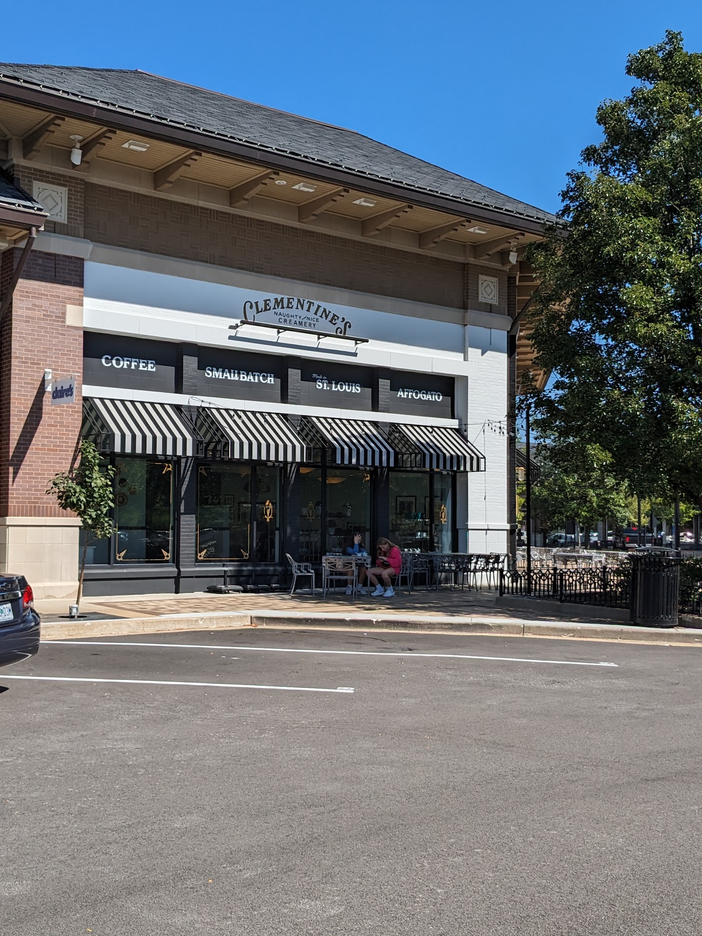 Read moreI visited Clementine's for the first time at their Lake Saint Louis grand opening, and it did not disappoint! It was understandably busy when I went, with 10-15 people ahead of me in line when I arrived. The line moved at a good pace, giving me plenty of time to check out the menu while I waited. The employees were friendly and helpful, making sure to ask customers if they had any questions about the menu. The selection of ice cream flavors was somewhat limited on this first day, but I suppose that will just grow with time. I decided to splurge on a waffle bowl, and two of my favorite ice cream flavors - gooey butter cake and dark chocolate! There is plenty of seating both inside and outside the shop. Located right in the center of a great outdoor shopping mall, I imagine it will stay pretty busy! I can't wait for...