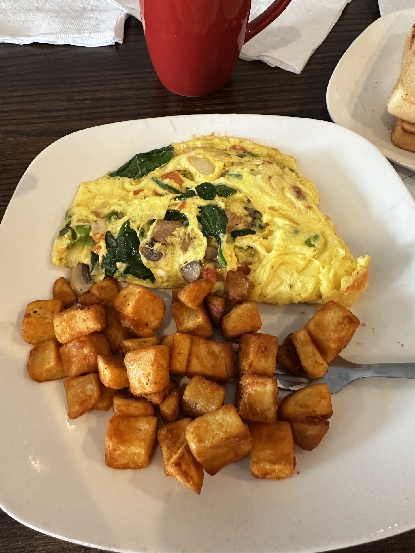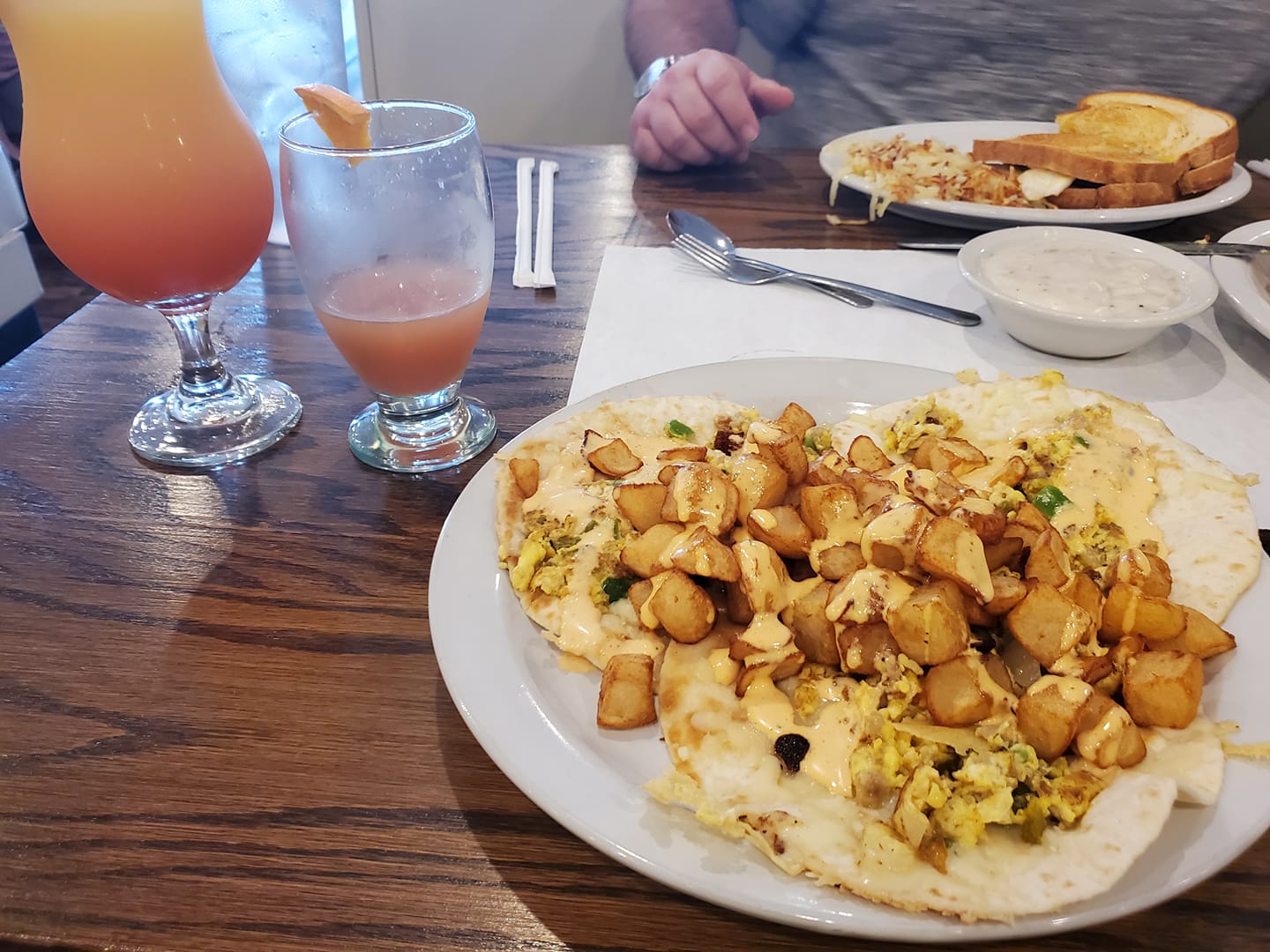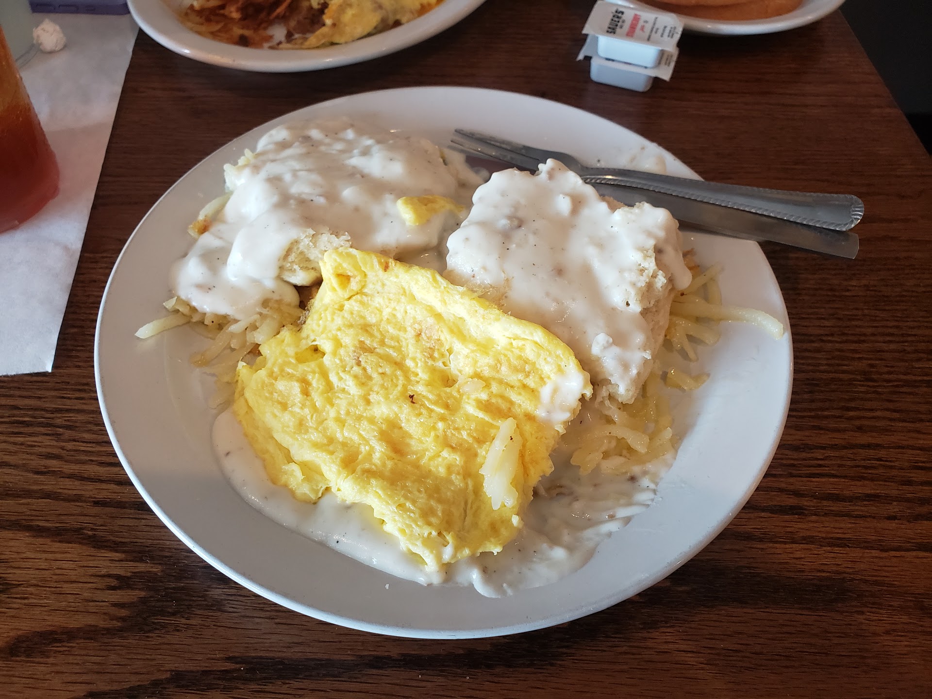 Food - Okay, wife's hasbrowns were overdone as were her pancakes.