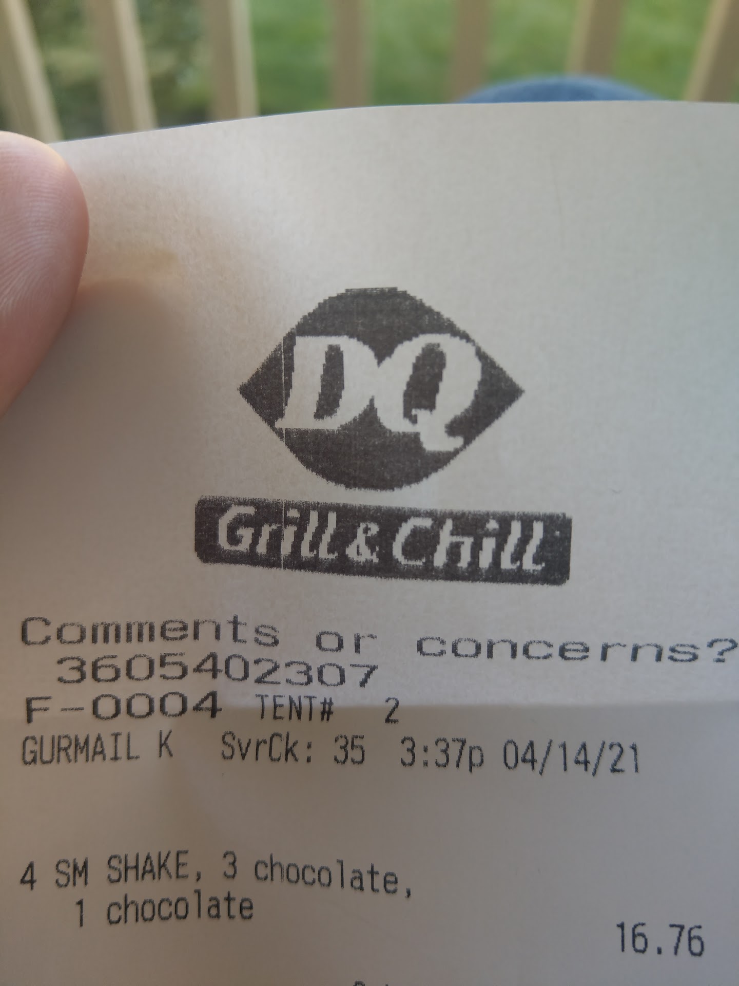 FROM APRIL 2021: Came in today for a to go order and while I waited, noticed things are starting to get a little gross inside. All the seating is taped off, so I'm rather confused as to how things would get this way. The tables directly in front of the register had layers of grime. Same with the handrails and seat backs and some floors. The windows on the south and east side don't look like they have been cleaned recently either. If no one is using these areas, I would think these would be somewhat easy things to maintain. I'm hoping this is just a rare case of being short staffed. To be fair, the bathrooms were well cared for and the shakes were great as always. It is just surprising to be in phase three nowdays and walk into a place that is presenting worse...